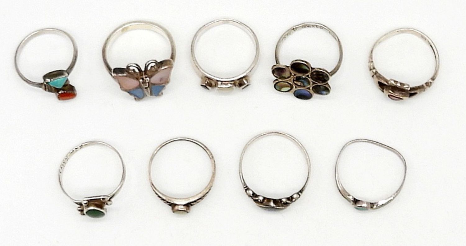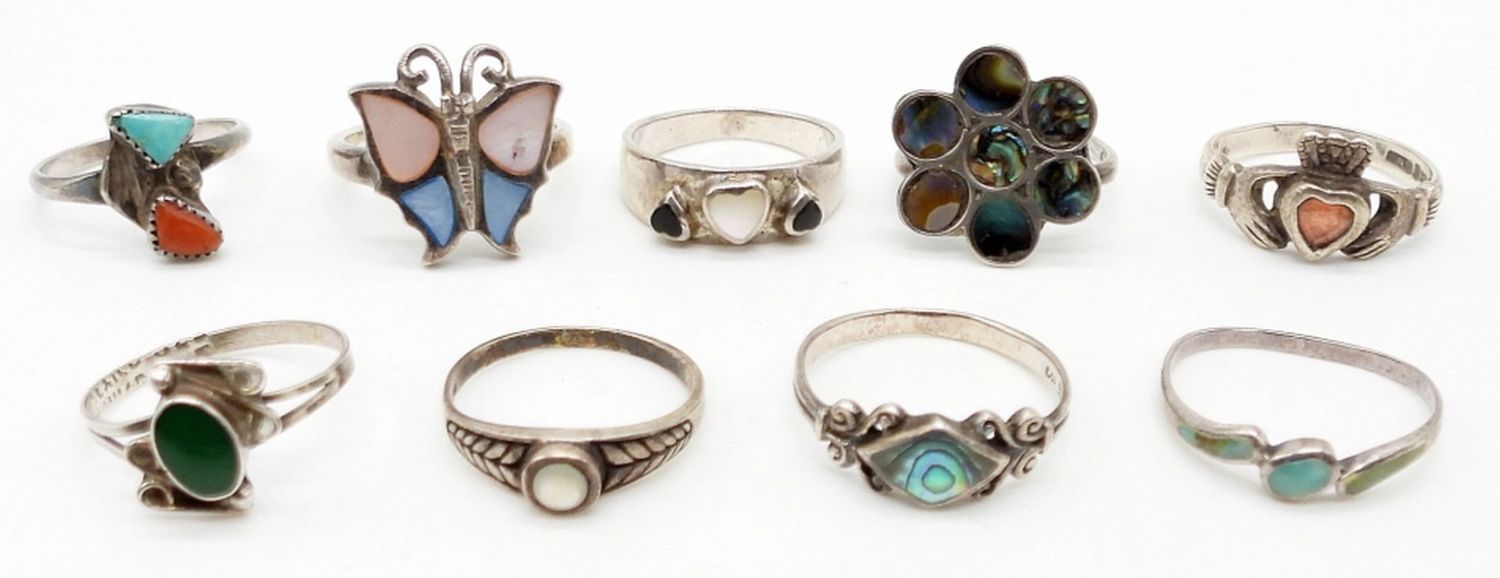 STERLING SILVER RINGS WITH ABALONE AND NATURAL STONES – SIZES 5-7 – 12.8 DWT – MARKED 925