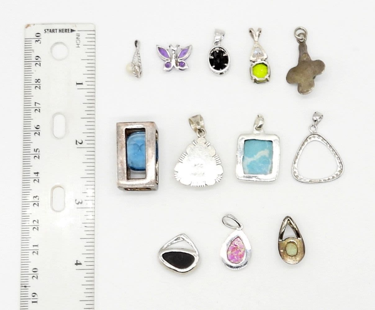 STERLING SILVER PENDANTS WITH SMOOTH NATURAL STONES – 29 DWT – MARKED 925, STERLING RCC
