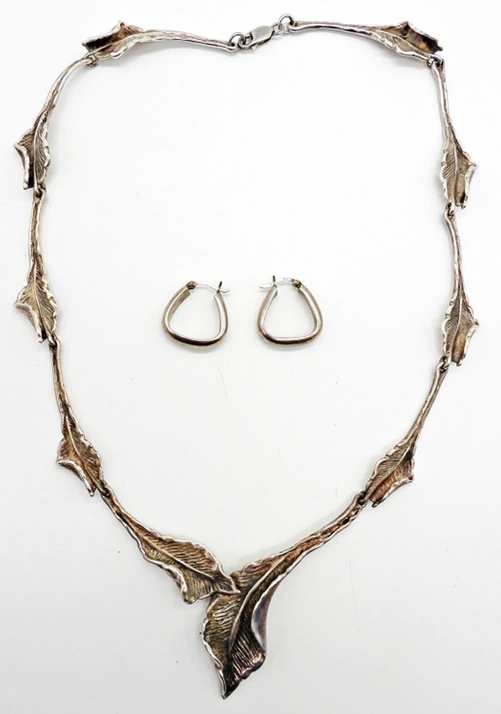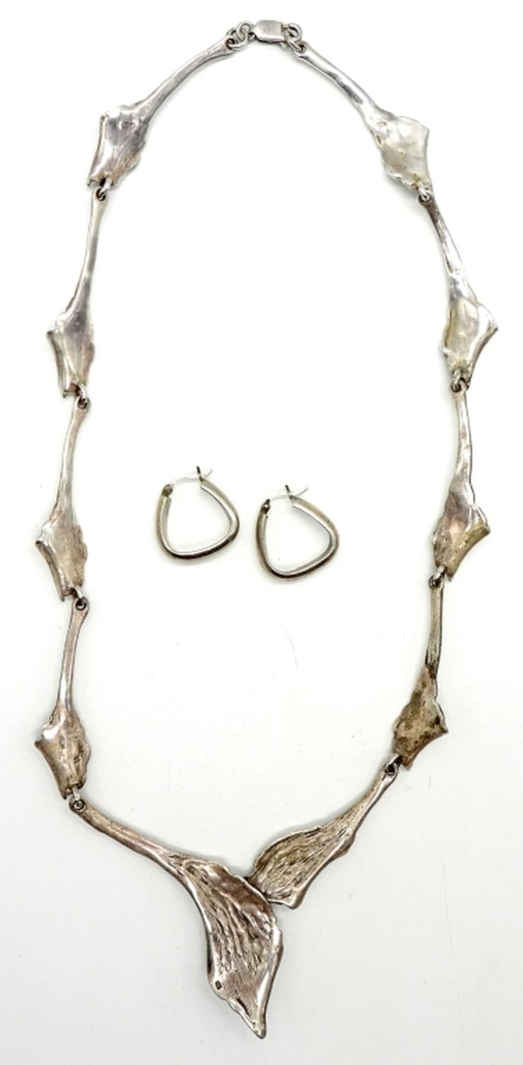 26DWT, 17IN LONG, FESTOON STYLE, STAMPEDE 925 ON THE BACK, A PAIR OF STERLING HOOPS STAMPED 925,