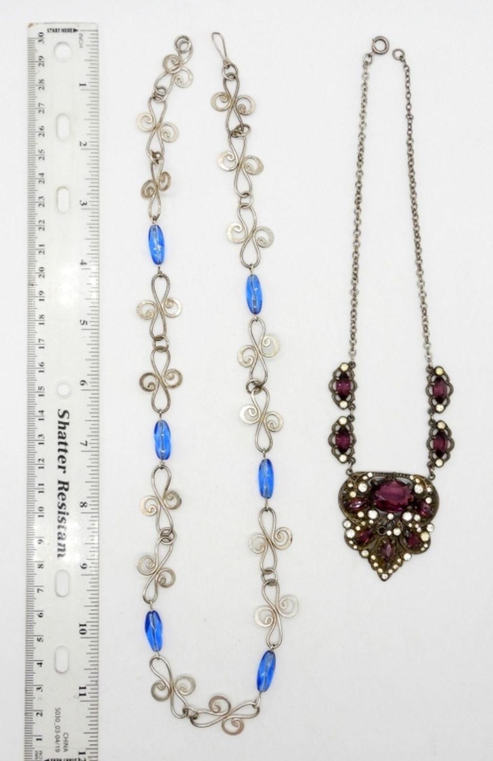 STERLING SILVER NECKLACES WITH BLUE & PURPLE NATURAL GEMSTONES – 16″ & 24″ CHAINS – 36 DWT