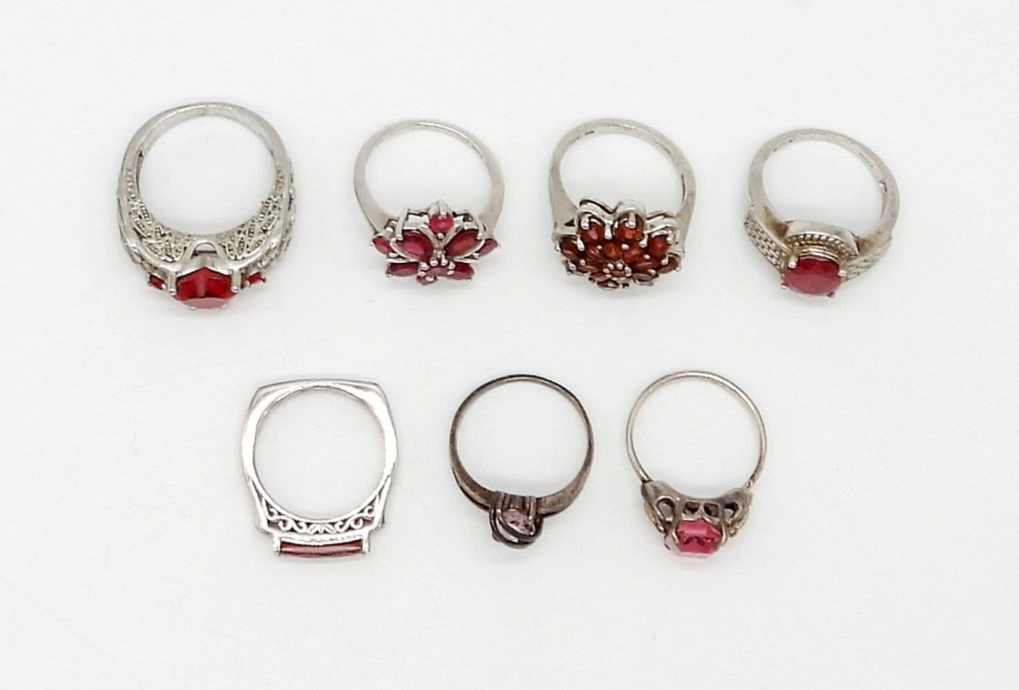 STERLING SILVER RINGS WITH RED & PINK TONE NATURAL GEMSTONES – SARAH COVENTRY – MARKED STERLING – 20.4 DWT – SIZES 8-10