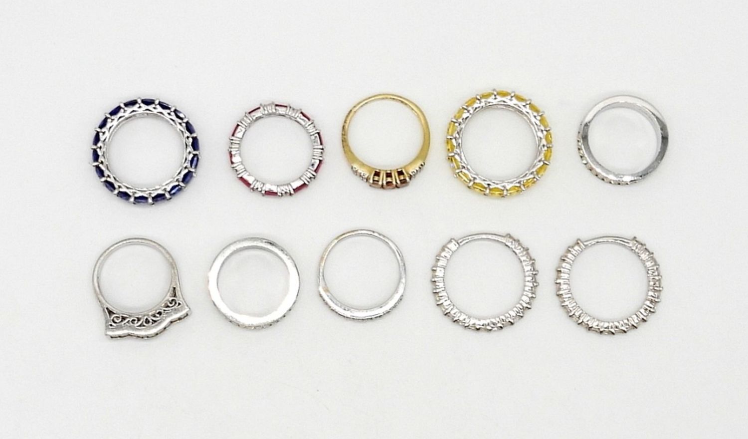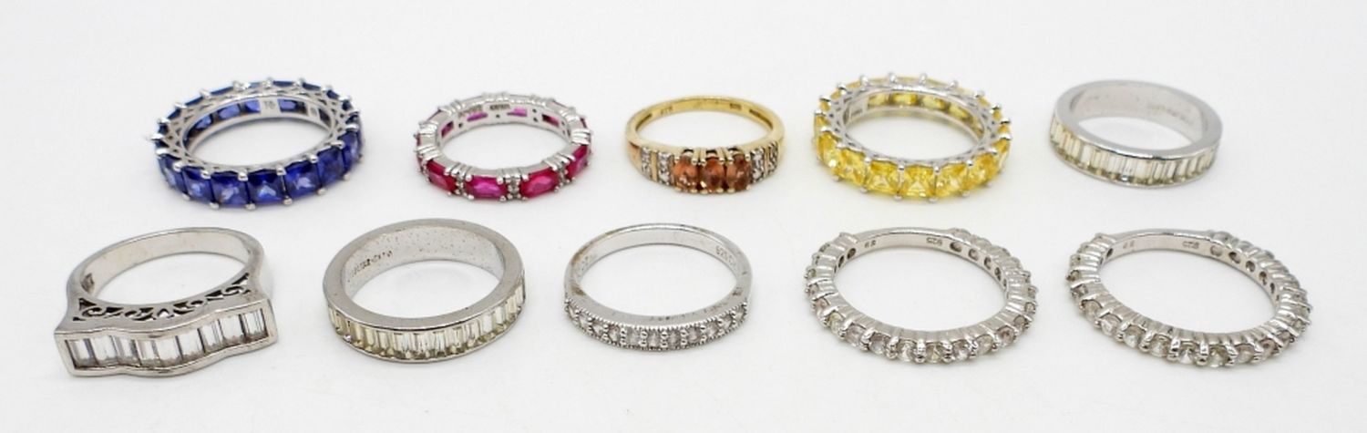 STERLING SILVER RINGS WITH MULTICOLOR GEMSTONES – ALL MARKED STERLING 925 – 21.6 DWT – SIZES 7-9
