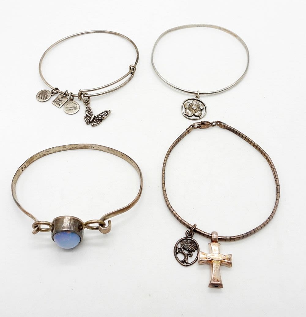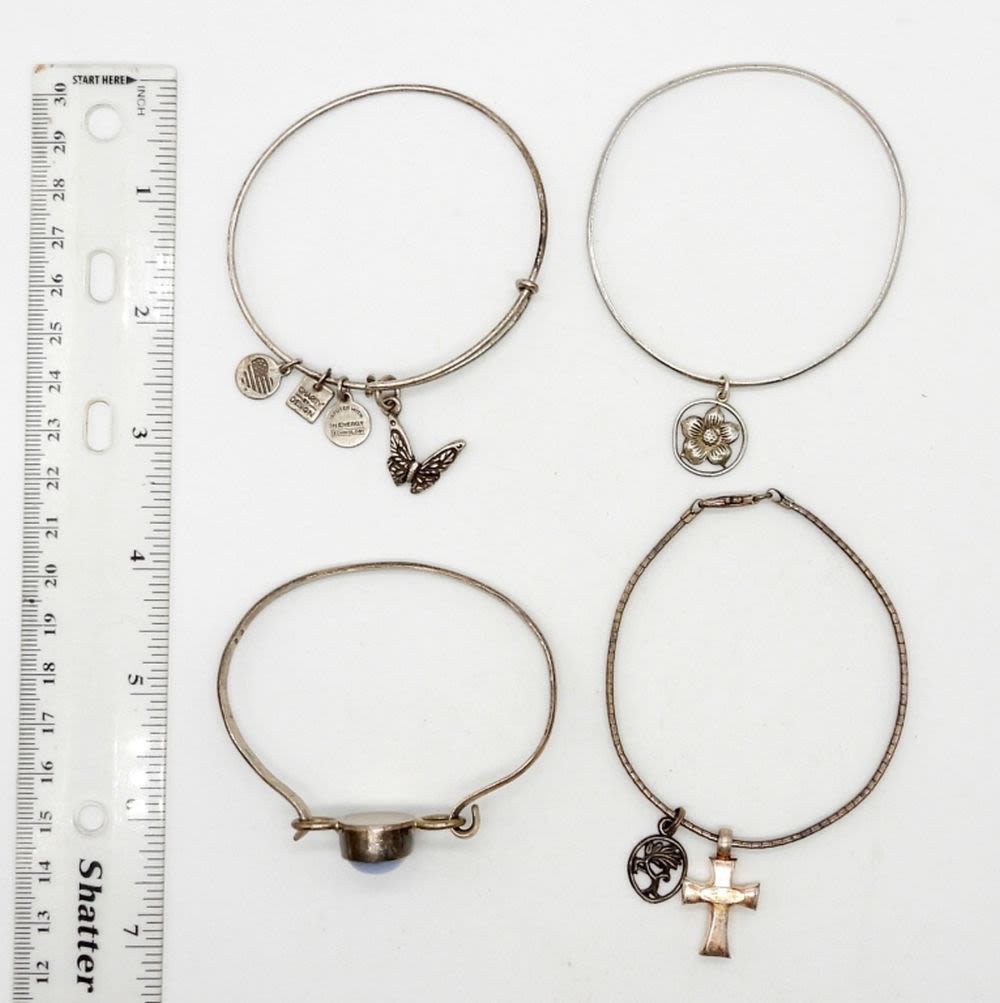 STERLING SILVER BANGLE STYLE BRACELETS WITH CHARMS & CENTER NATURAL STONE – 29.2 DWT – MARKED STERLING & MEXICO 925