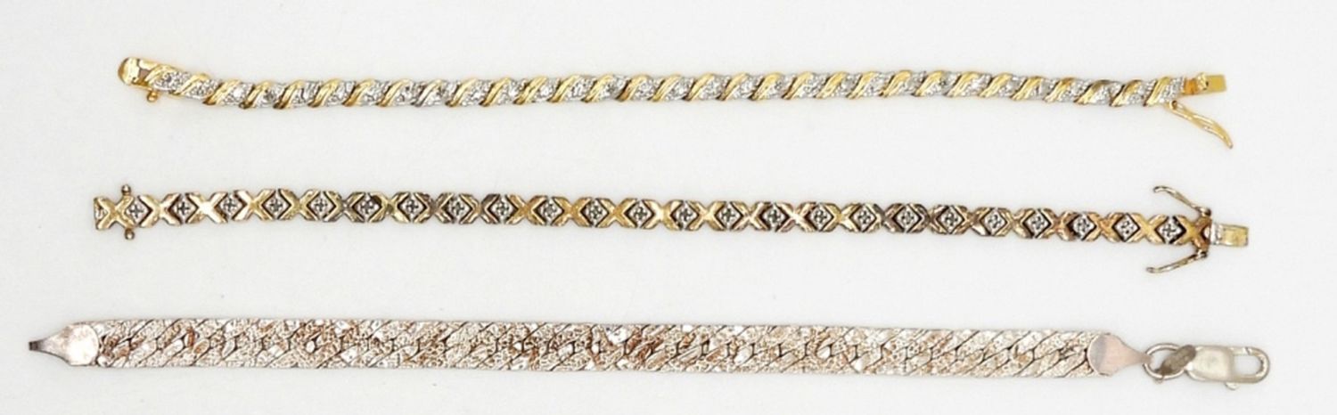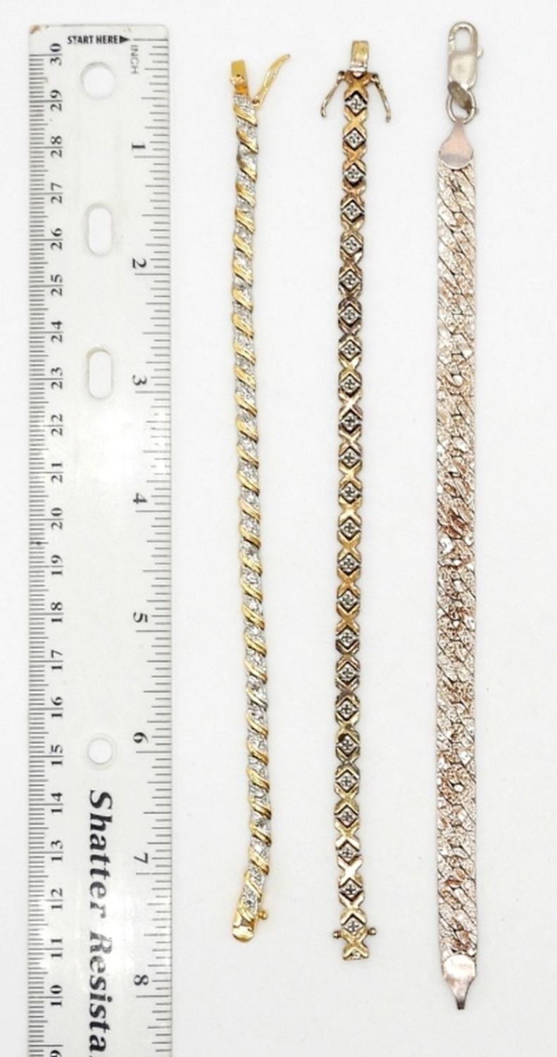 7.5″-8″ STERLING GOLD TONE TENNIS BRACELETS WITH CRYSTAL RHINESTONES – ALL MARKED STERLING 925 – 29.9 DWT