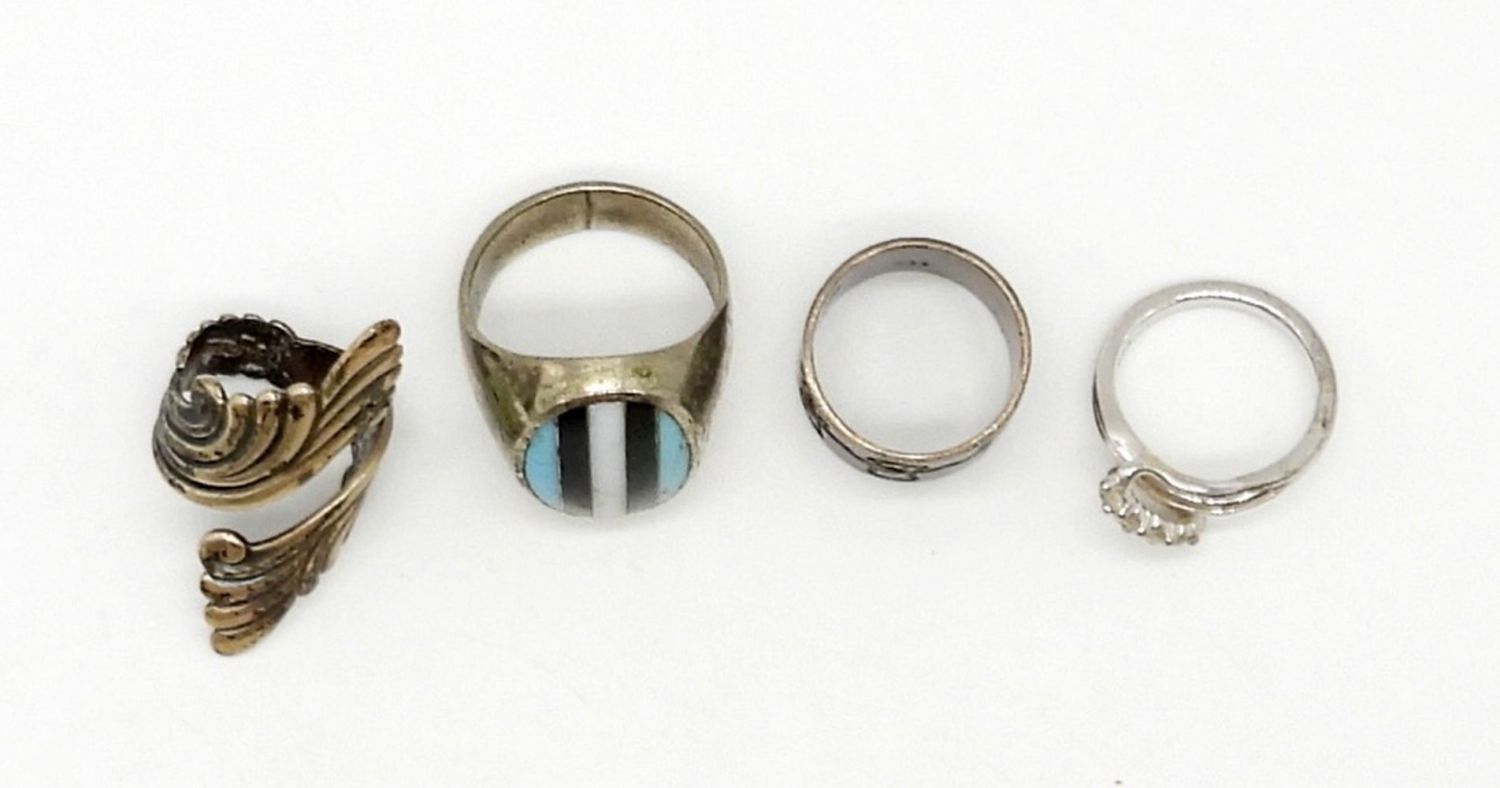 VINTAGE STERLING SILVER FASHION RINGS WITH ENGRAVING, NATURAL STONES & GEMSTONES – 20.5 DWT – MARKED 925 – SIZES 7-11
