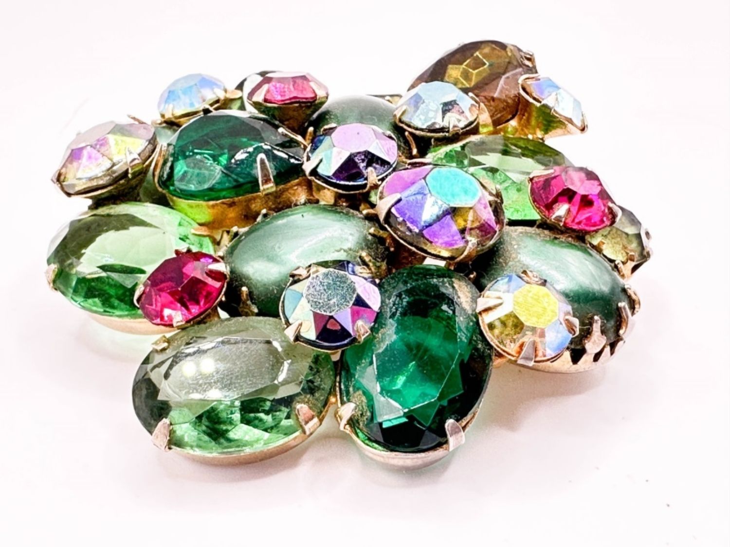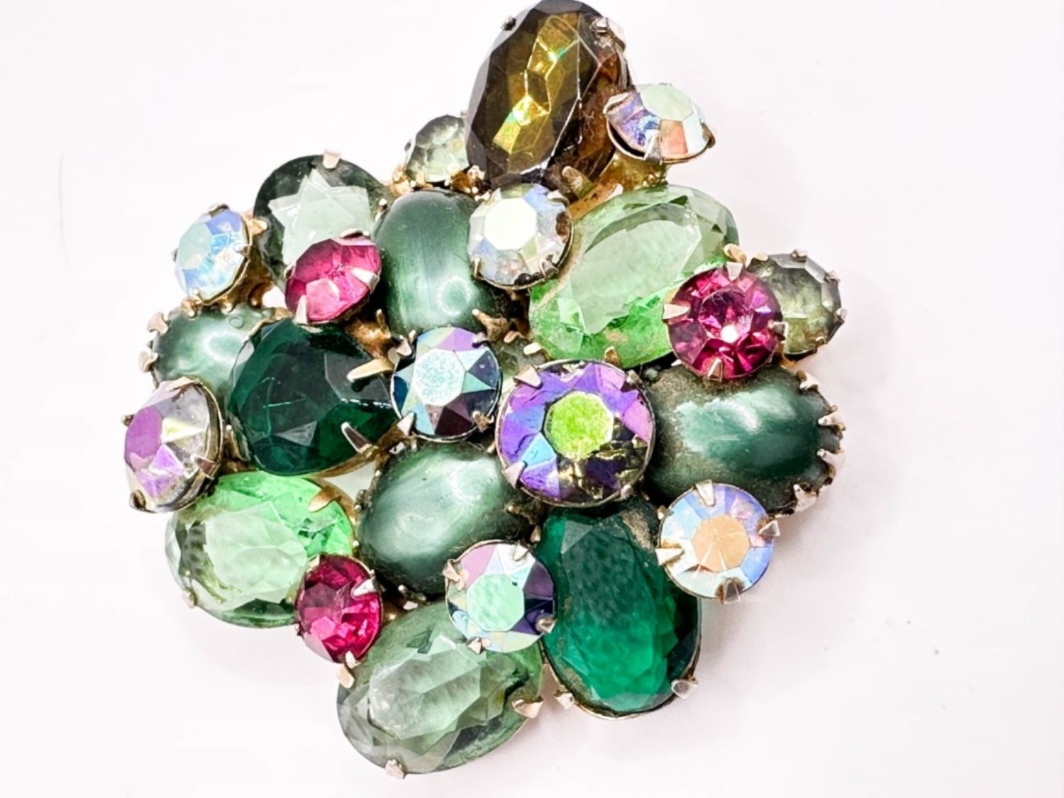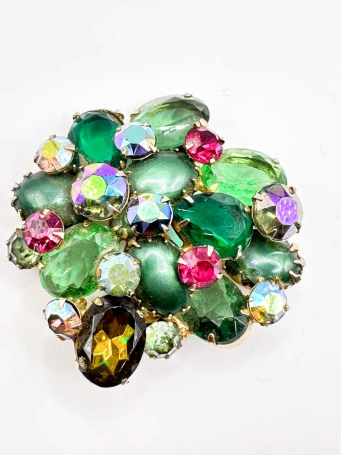 REGENCY? VINTAGE LARGE MULTI COLOR STONE BROOCH , RESEMBLES SCHREINER STONES