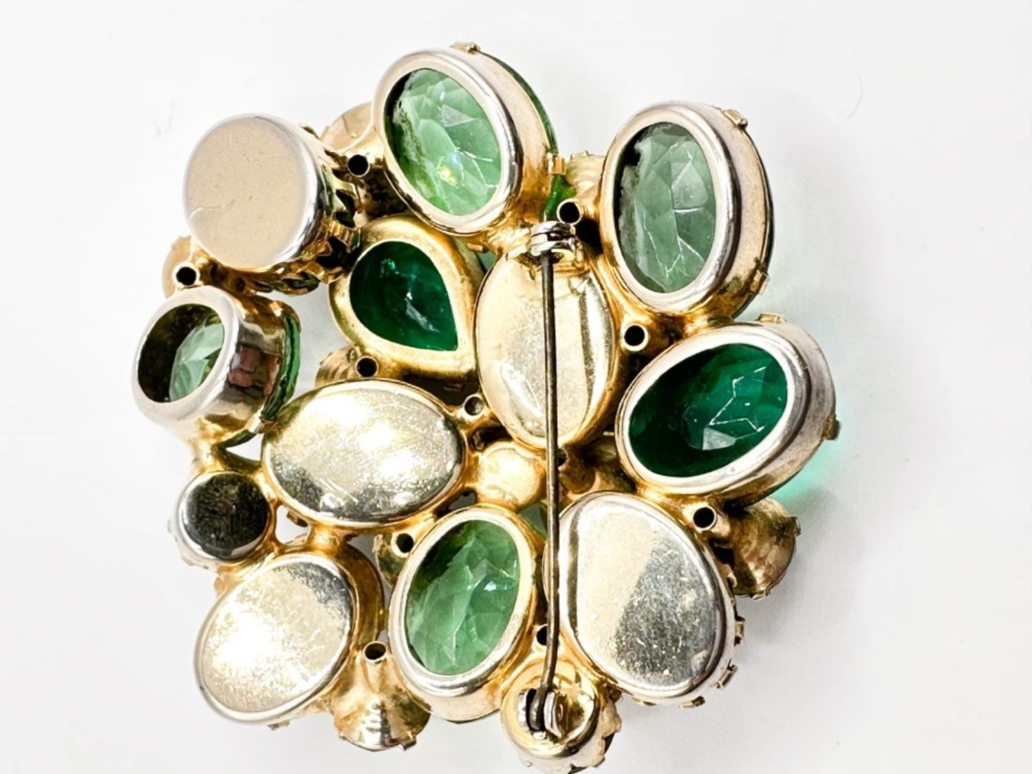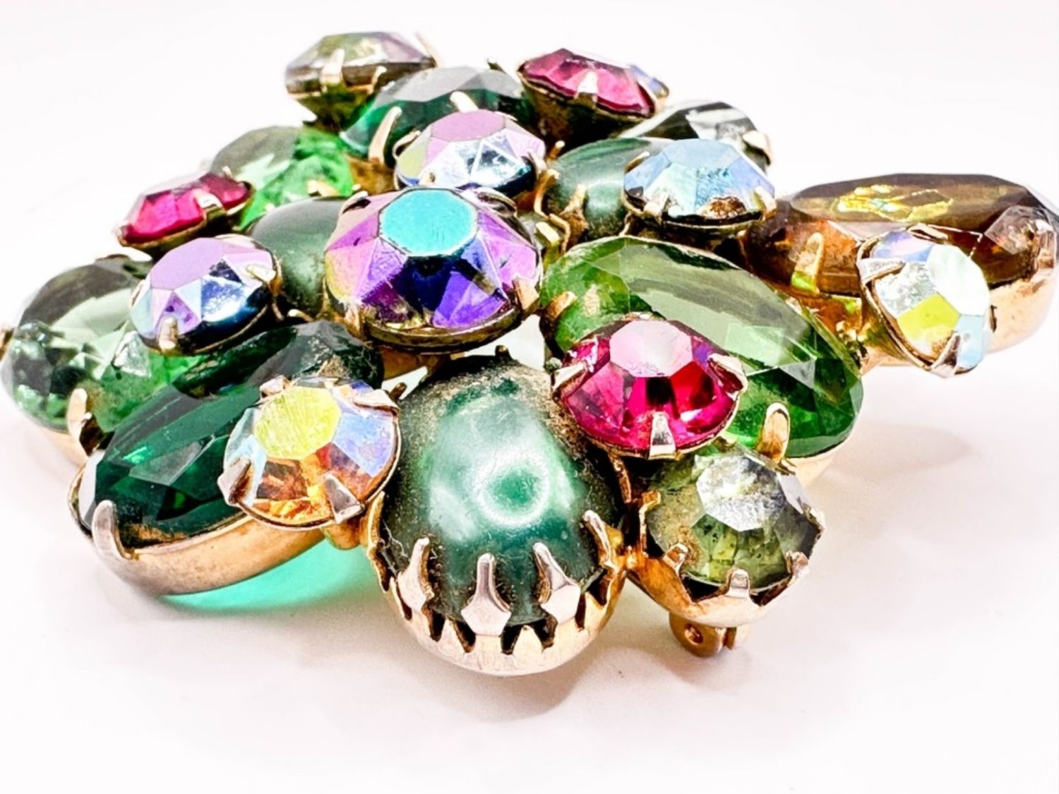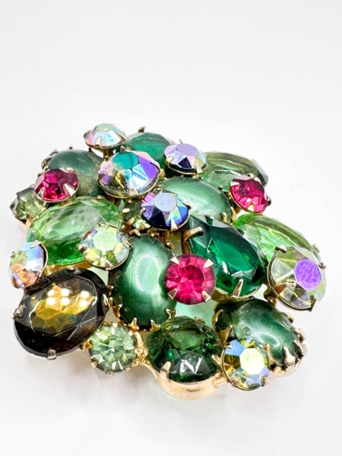 REGENCY? VINTAGE LARGE MULTI COLOR STONE BROOCH , RESEMBLES SCHREINER STONES