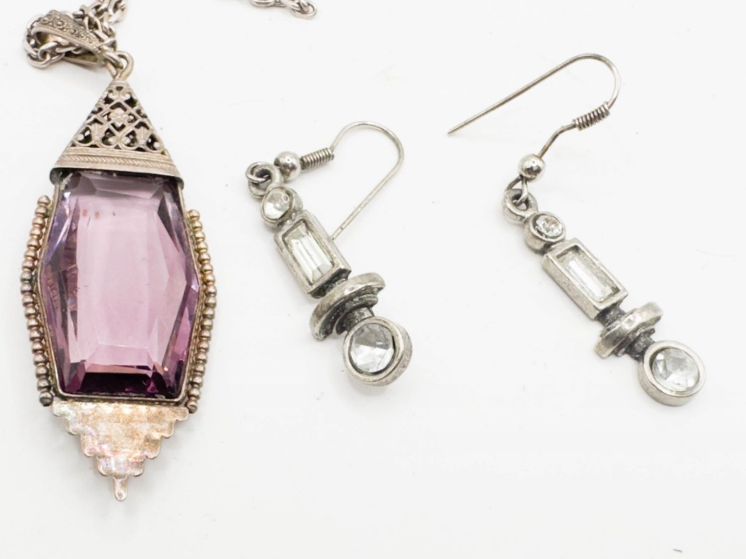 AMAZING STONE AMETHYST COLOR NECKLACE AND OTHER STONE EARRINGS