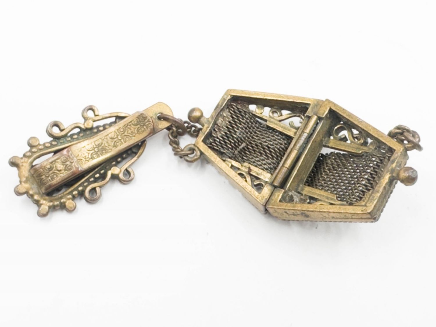 ANTIQUE? CLIP WITH STONES WITH MESH FOIL PURSE THAT OPENS