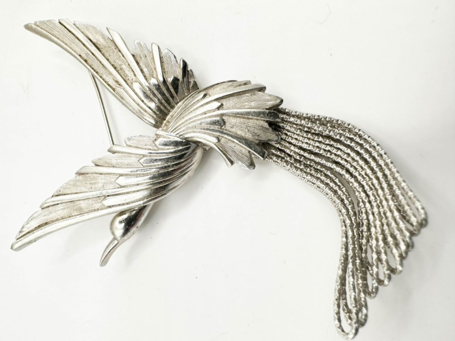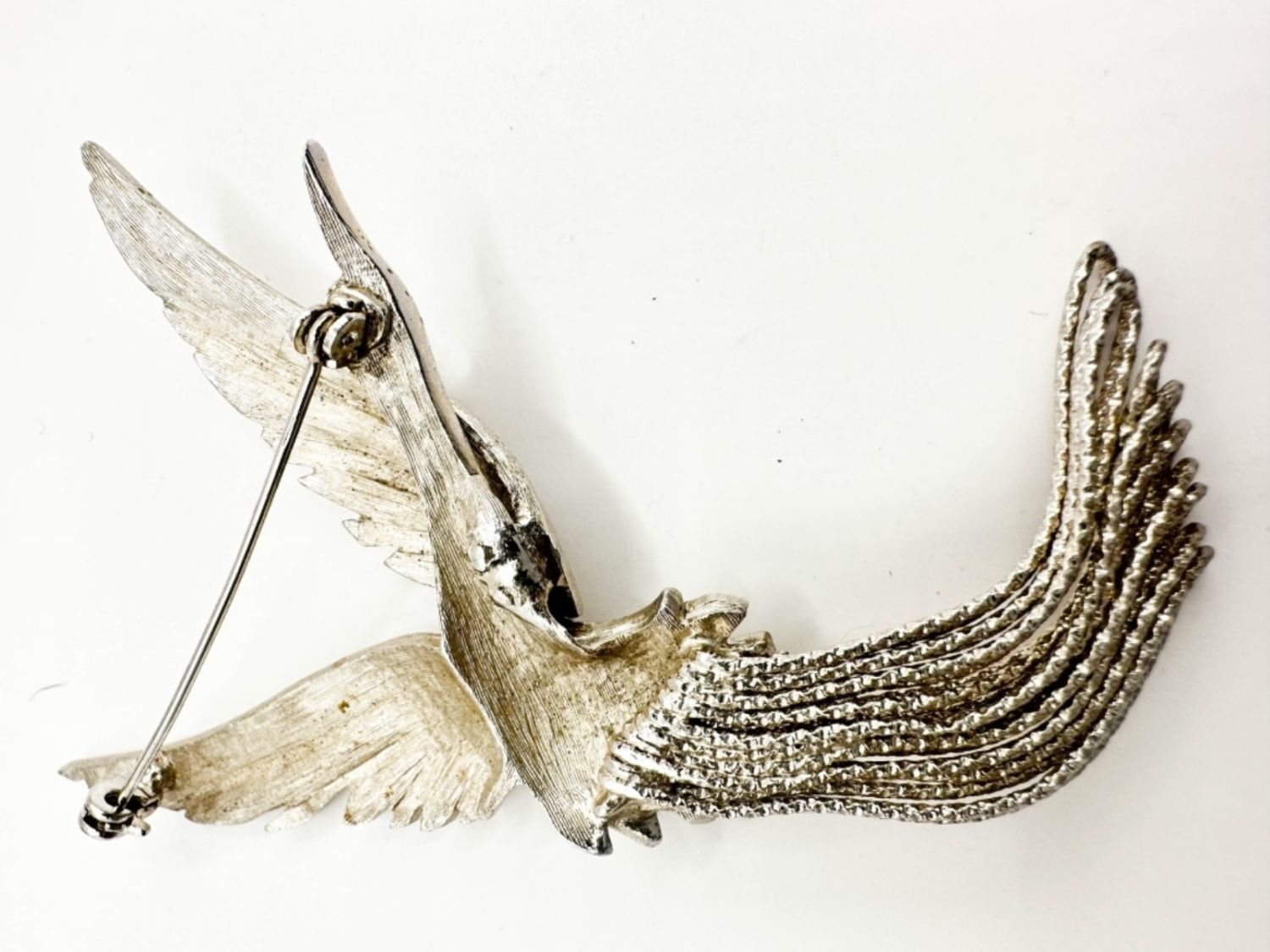 FLYING BIRD BROOCH IN SILVER TONE