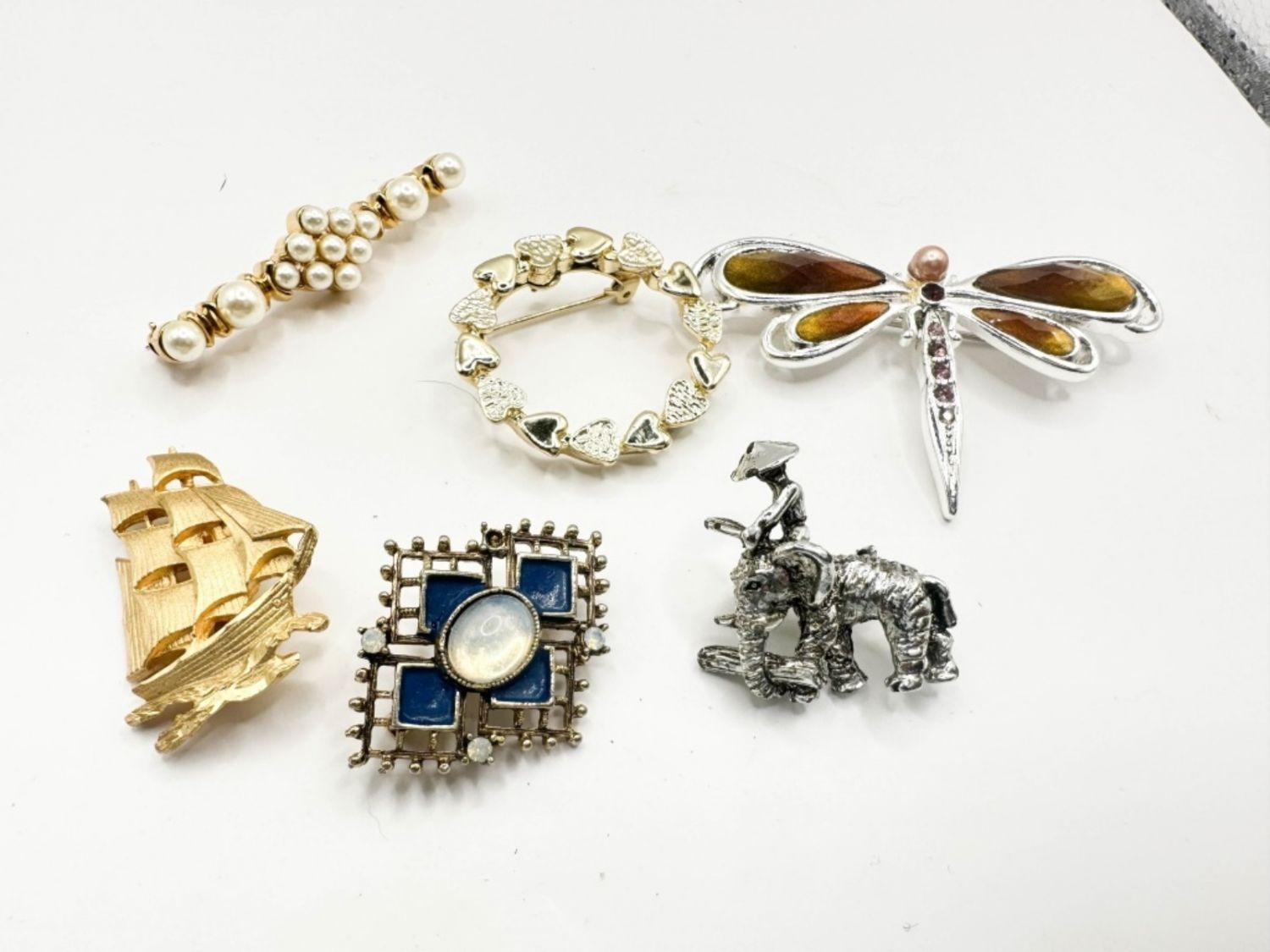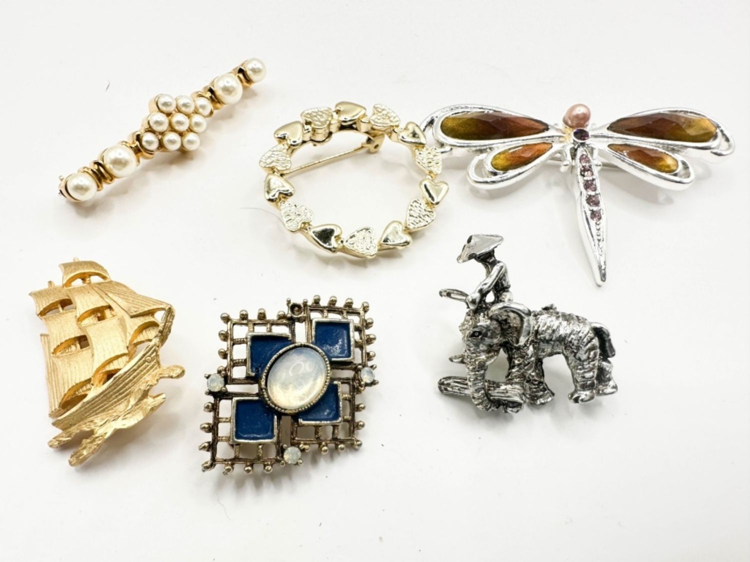 SAILING SHIP, DRAGONFLY AND MORE BROOCHES