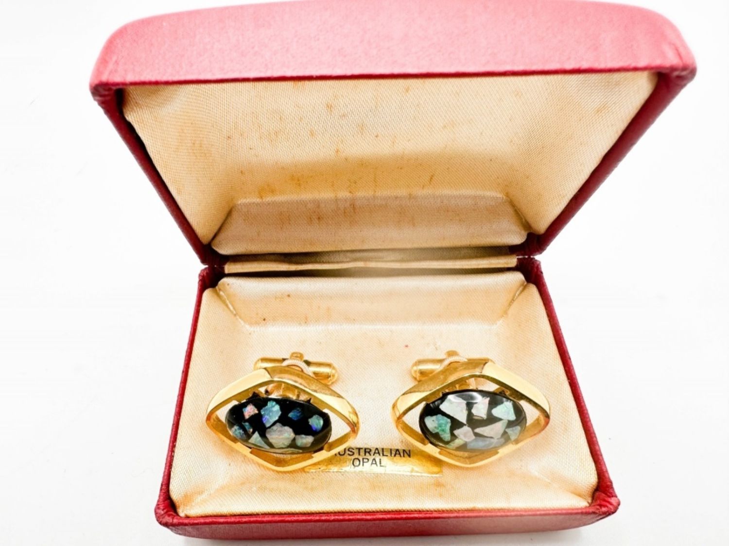 AUSTRALIAN OPAL CUFF LINKS SET W CASE