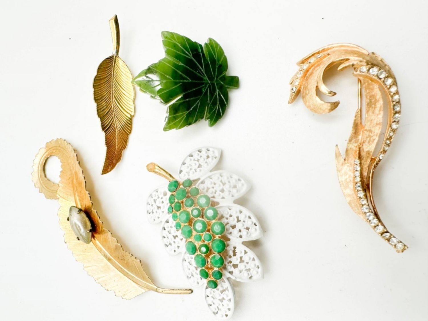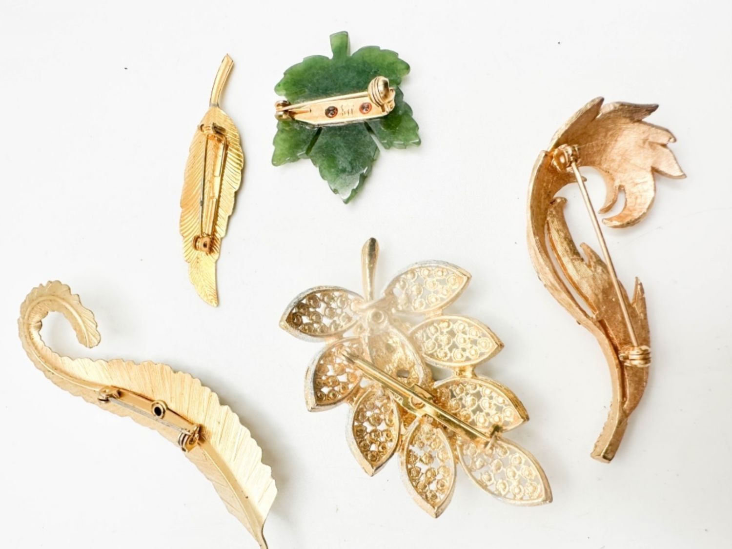 JADE ? LEAF BROOCHES