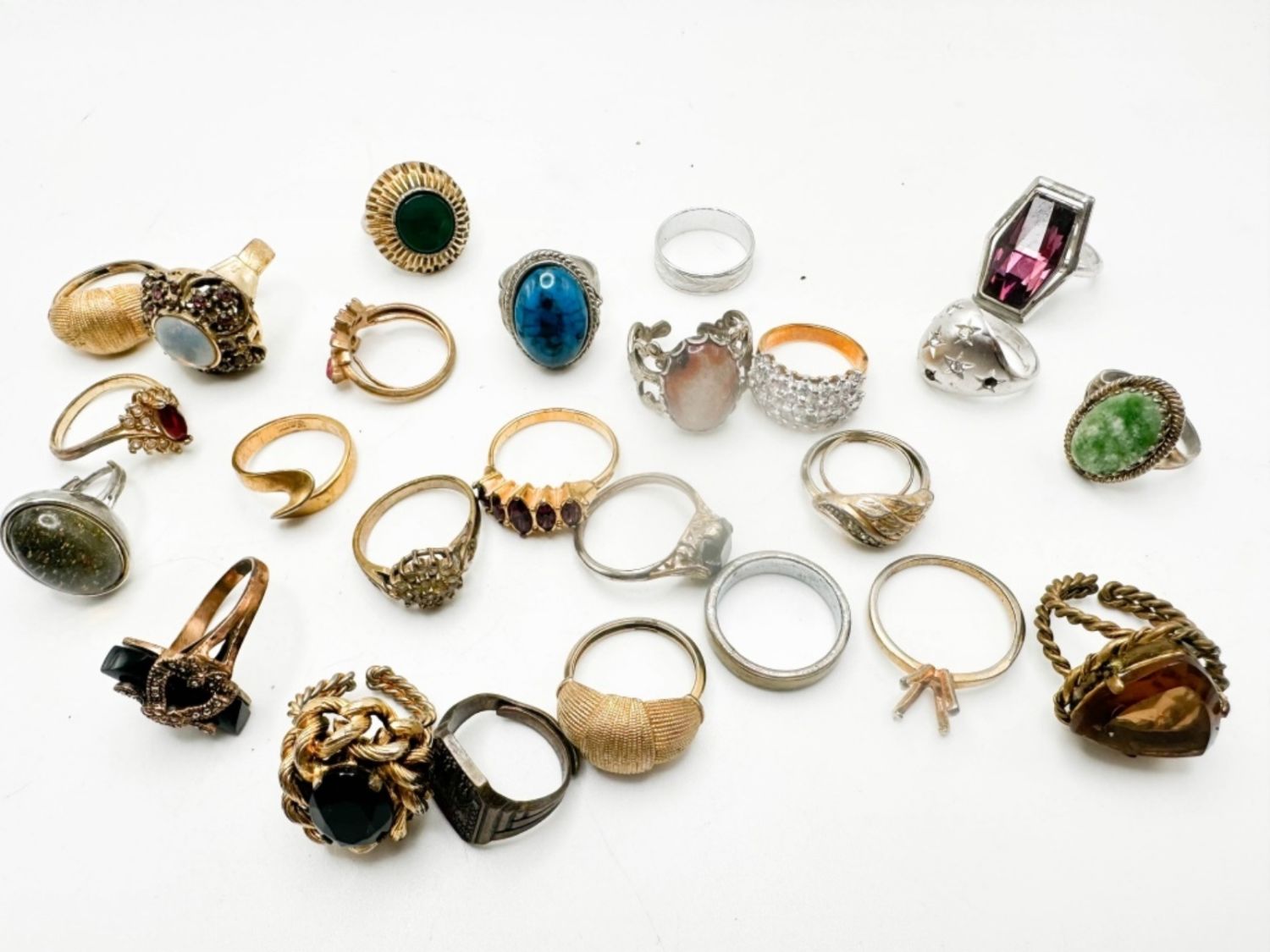 RINGS ASSORTED, VARIOUS STYLES, SIZES AND CONDITIONS