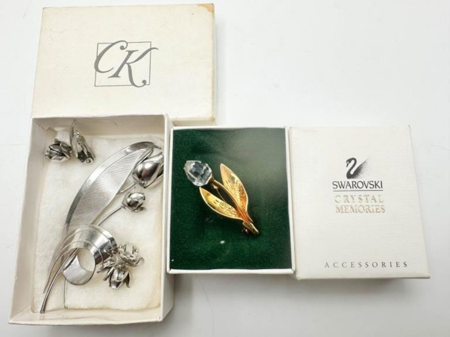 SWAROVSKI FLORAL BROOCH AND OTHER FLORAL BROOCH SET W CASES