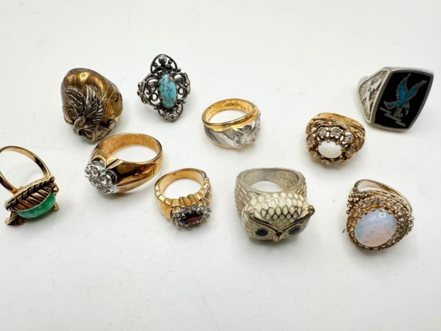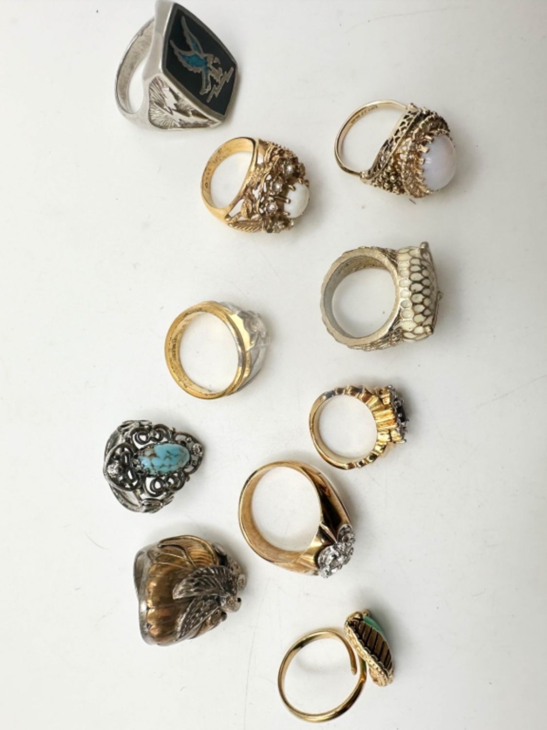 RINGS ASSORTED, VARIOUS STYLES, SIZES AND CONDITIONS