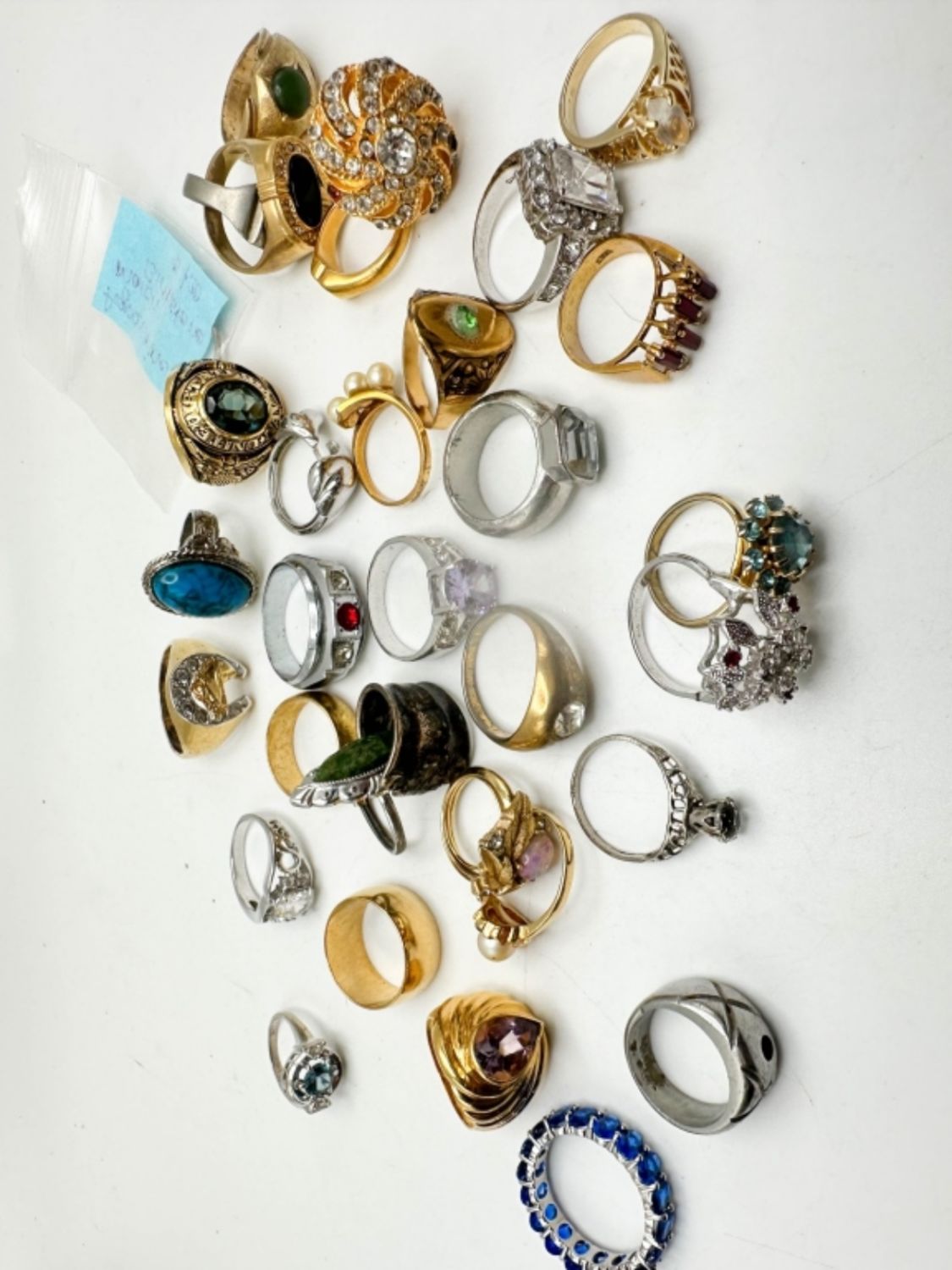 RINGS ASSORTED, VARIOUS STYLES, SIZES AND CONDITIONS