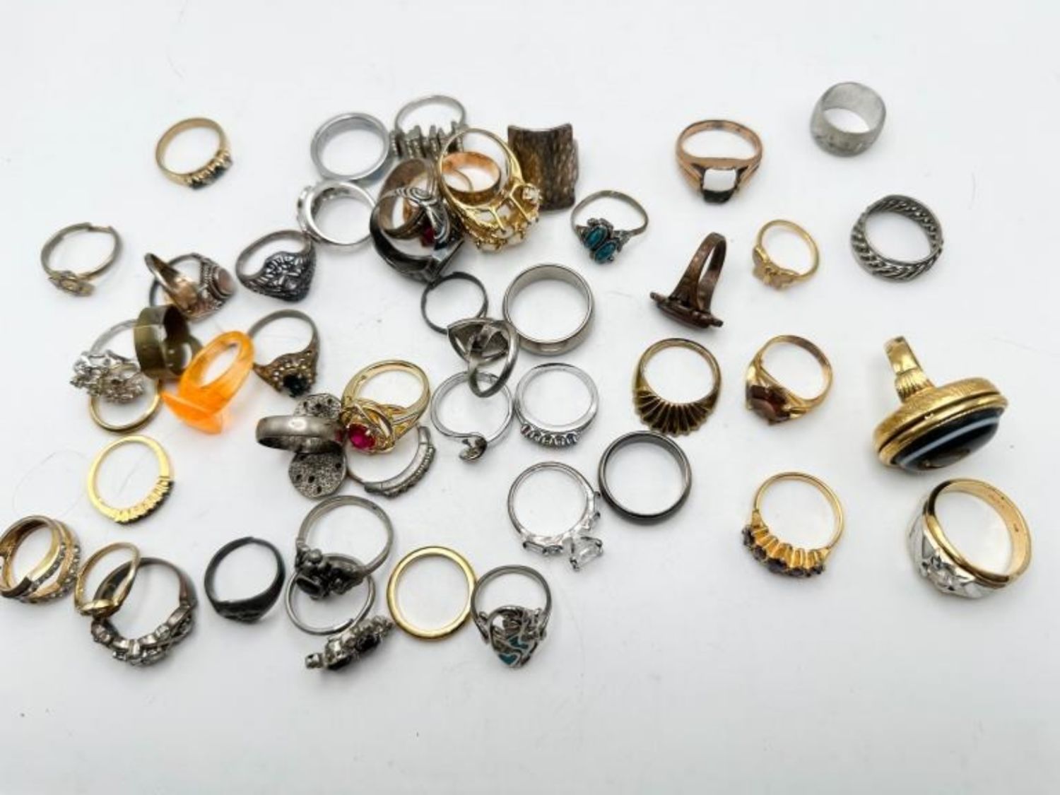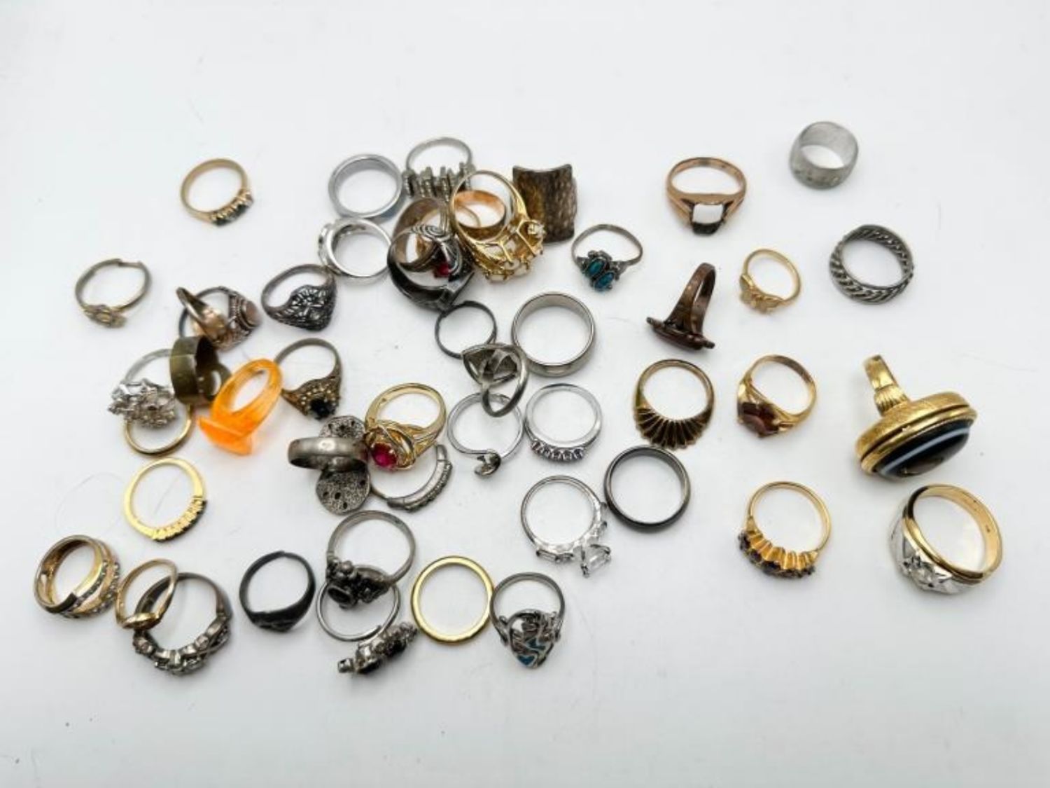 RINGS ASSORTED, VARIOUS STYLES, SIZES AND CONDITIONS