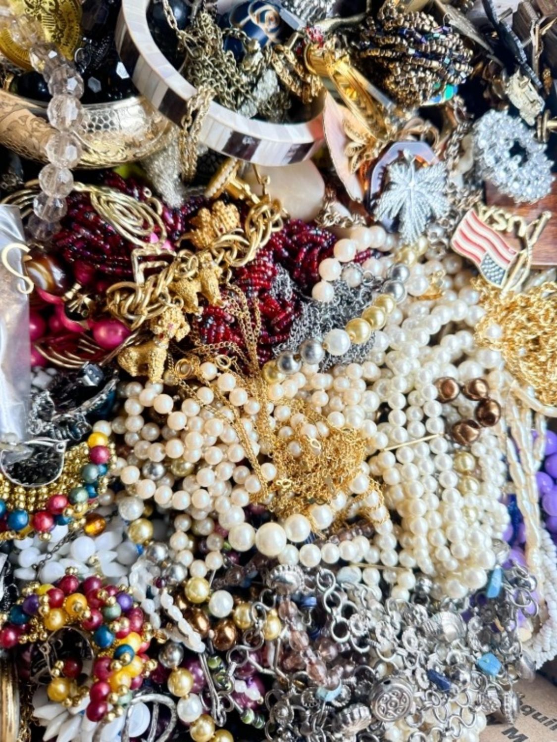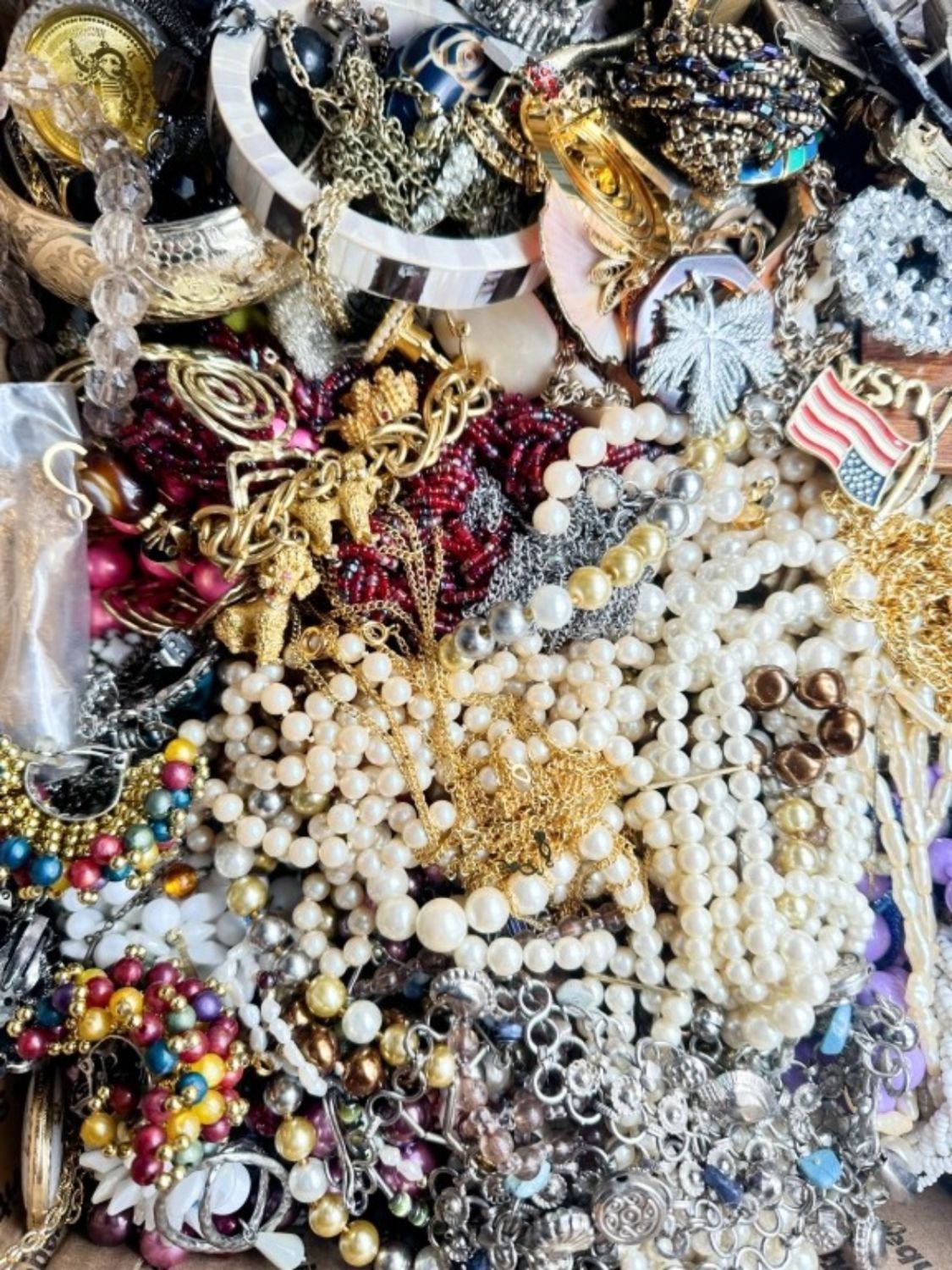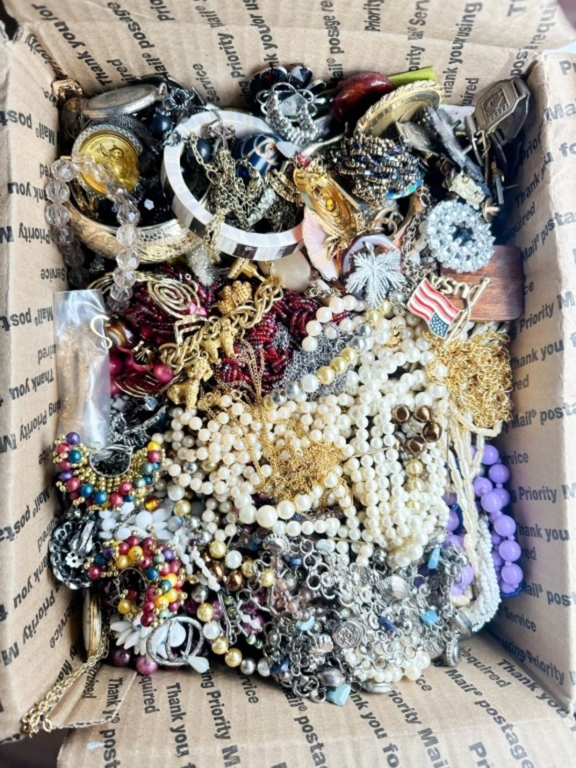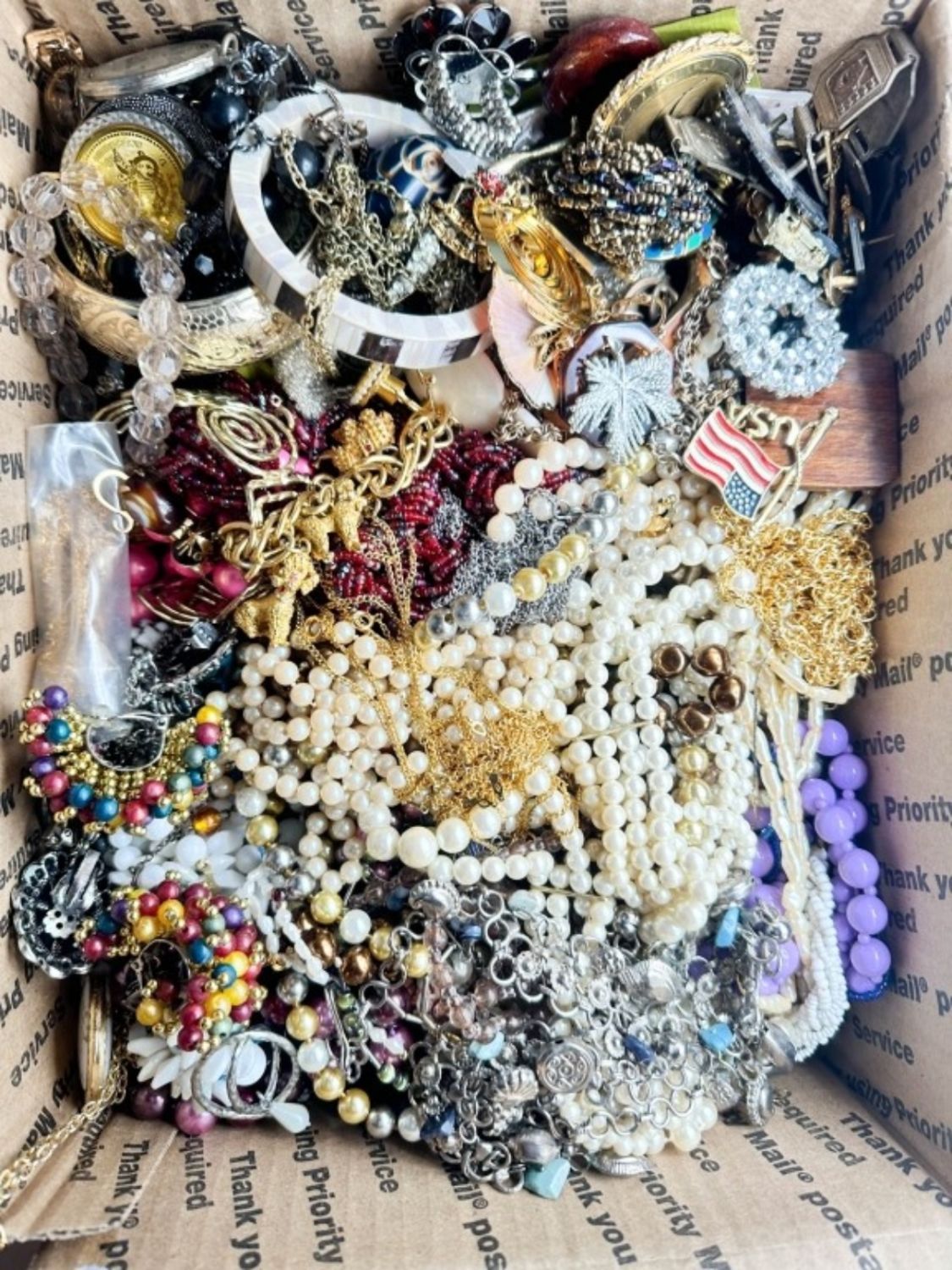 TREASURE BOX,LOTS OF VINTAGE , ALL WEARABLES, MED FLATE RATE BOX
