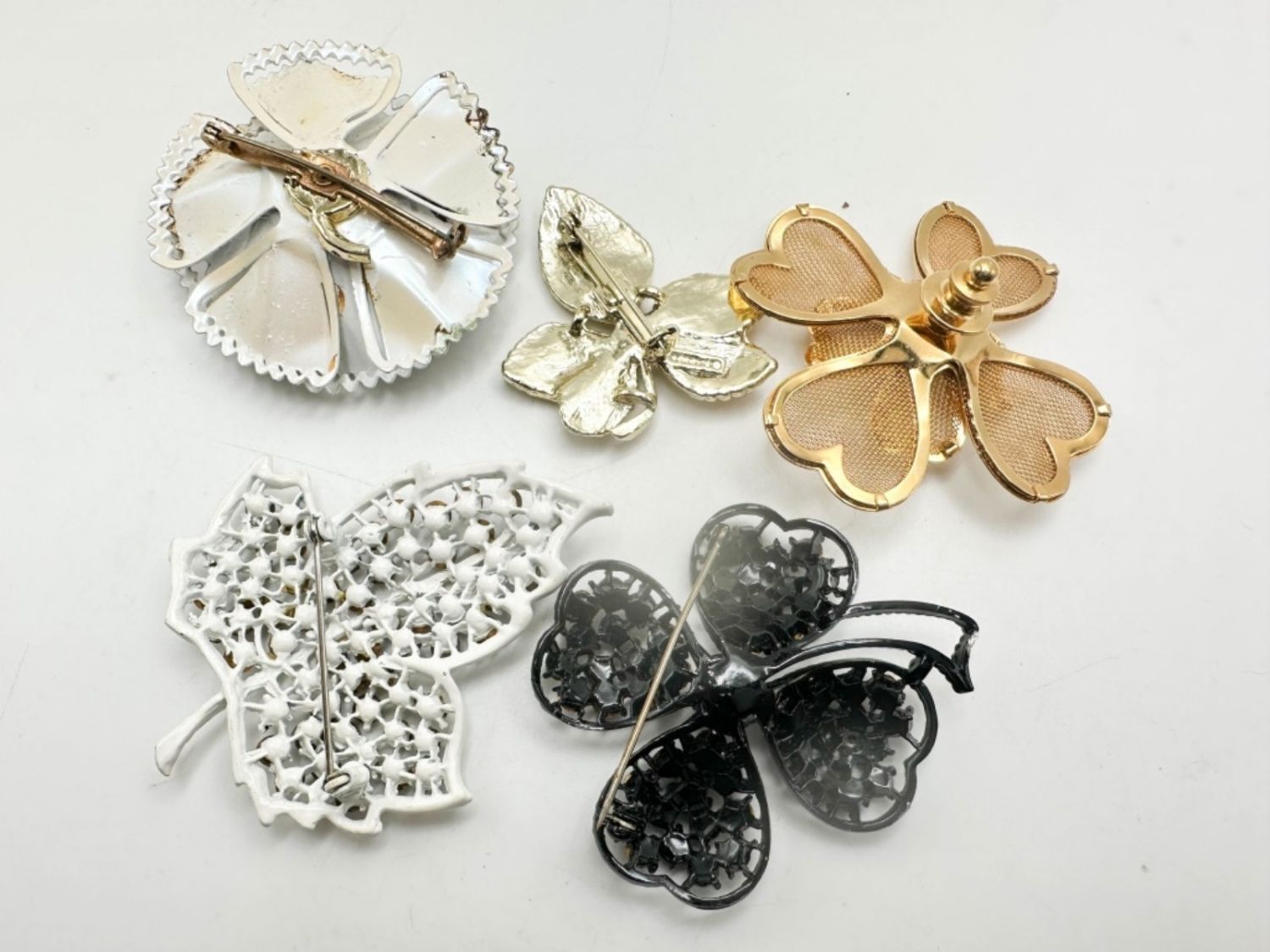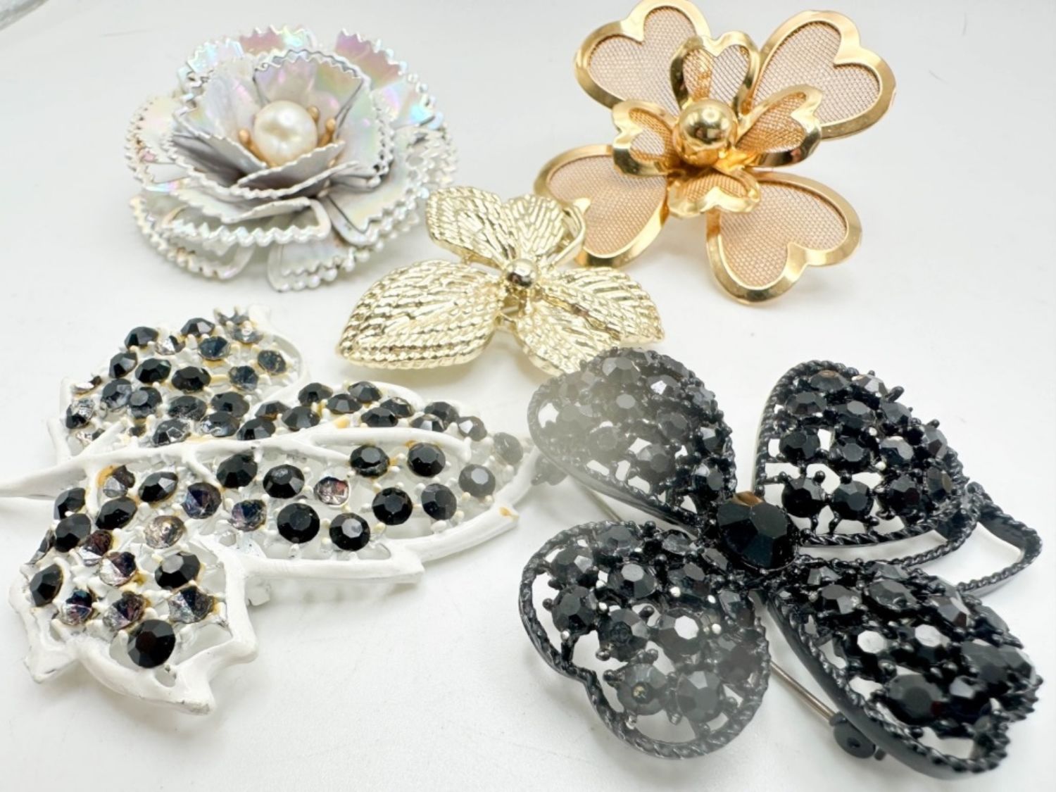 BROOCH ASSORTMENT, JAPANNED, FLORAL AND MORE