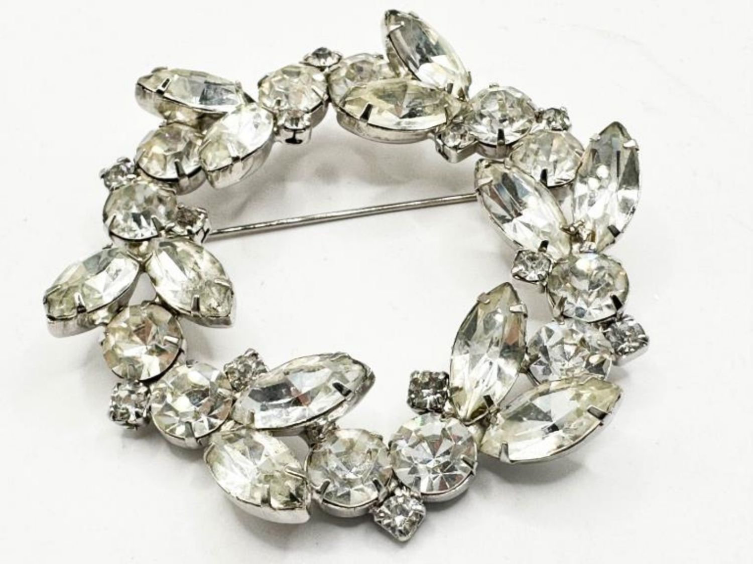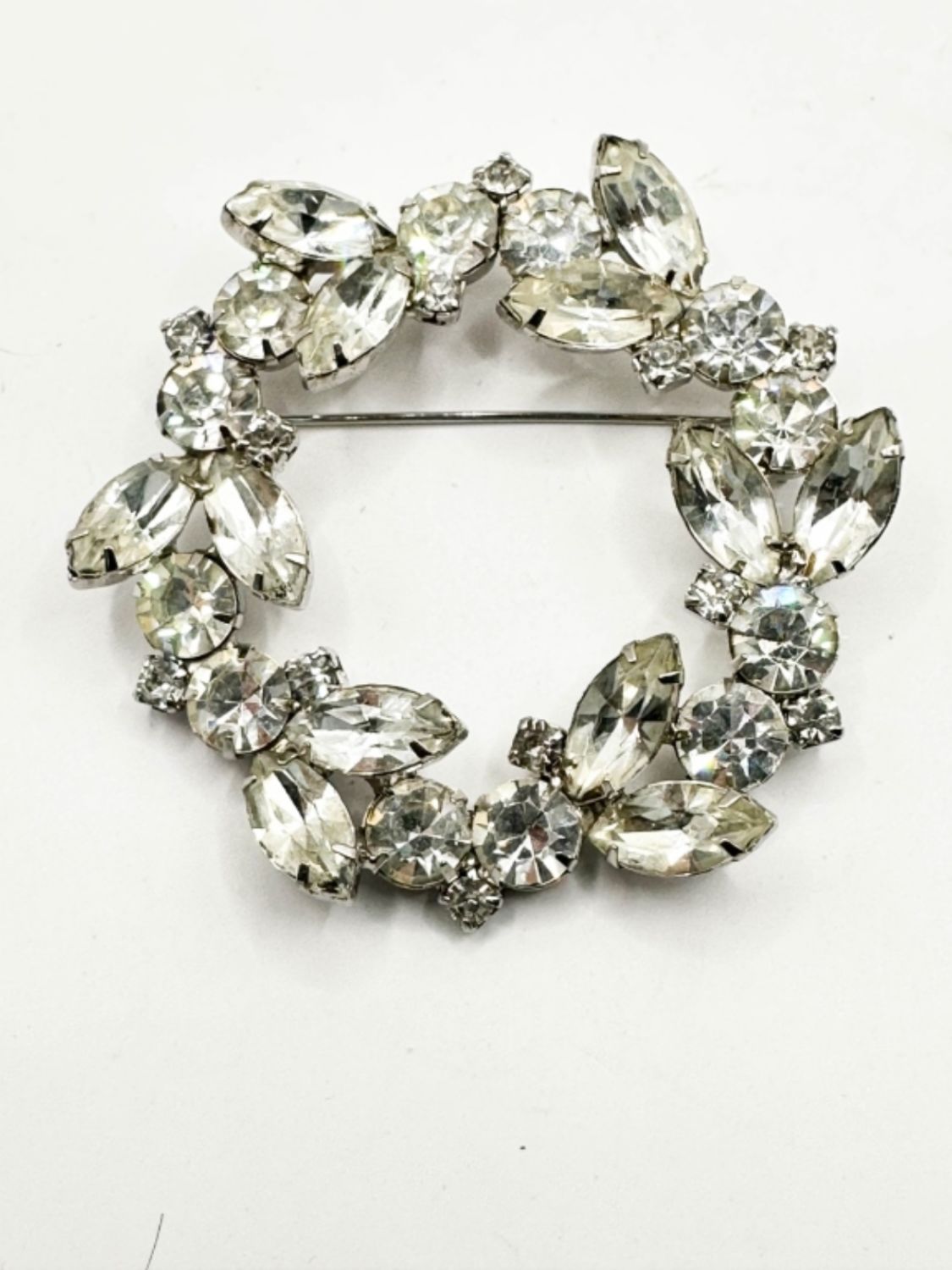 LARGE STONE BROOCH WITH CLEAR SHINY STONES AMAZING