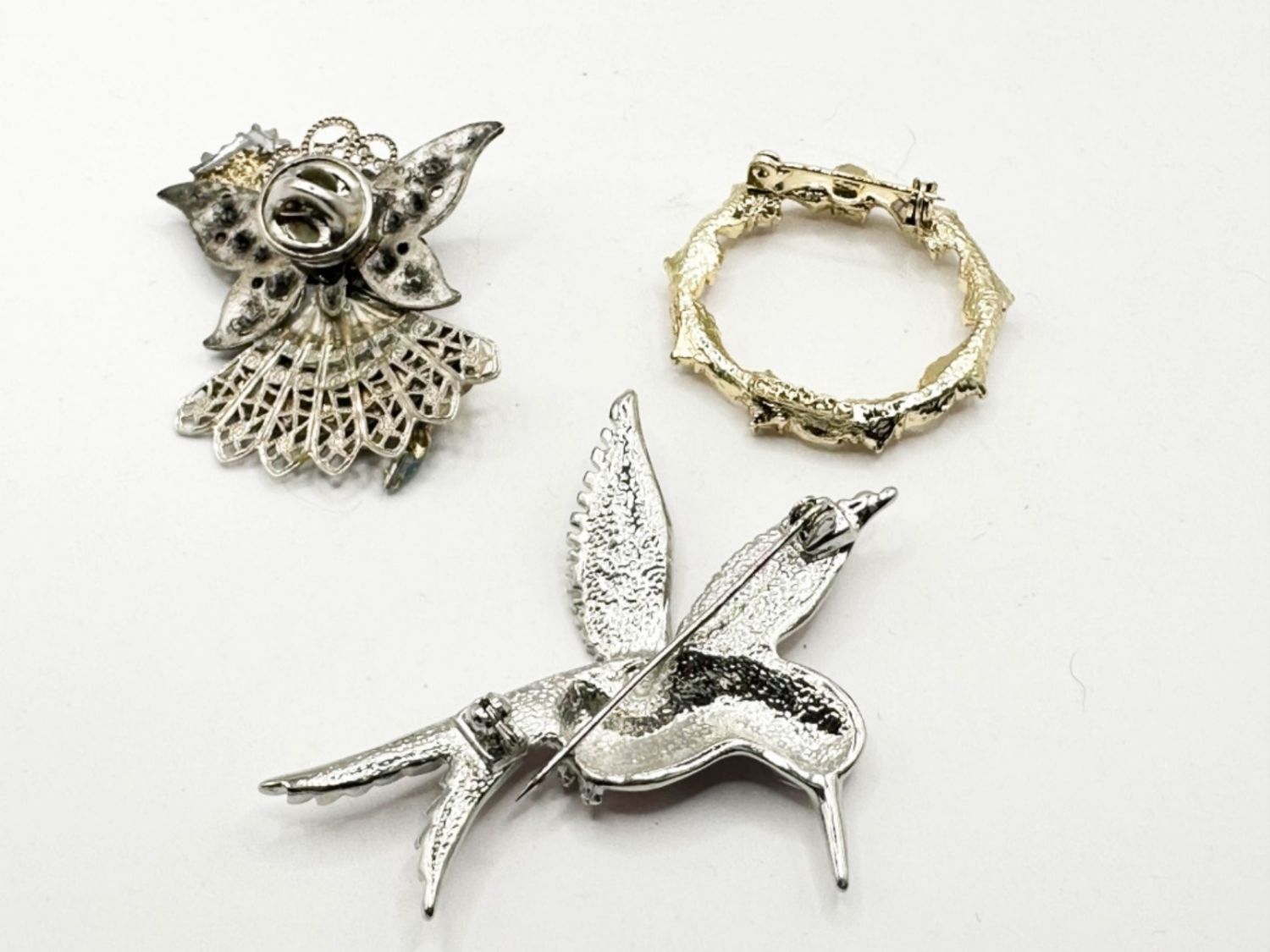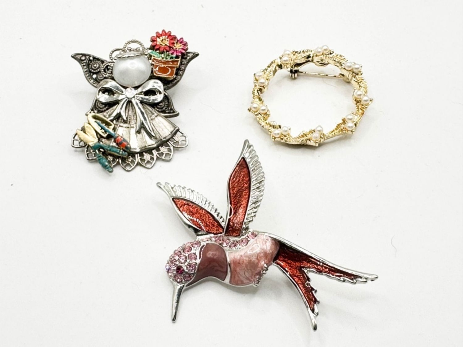 HUMMINGBIRD BROOCH AND ANGEL AND CIRCLE BROOCH