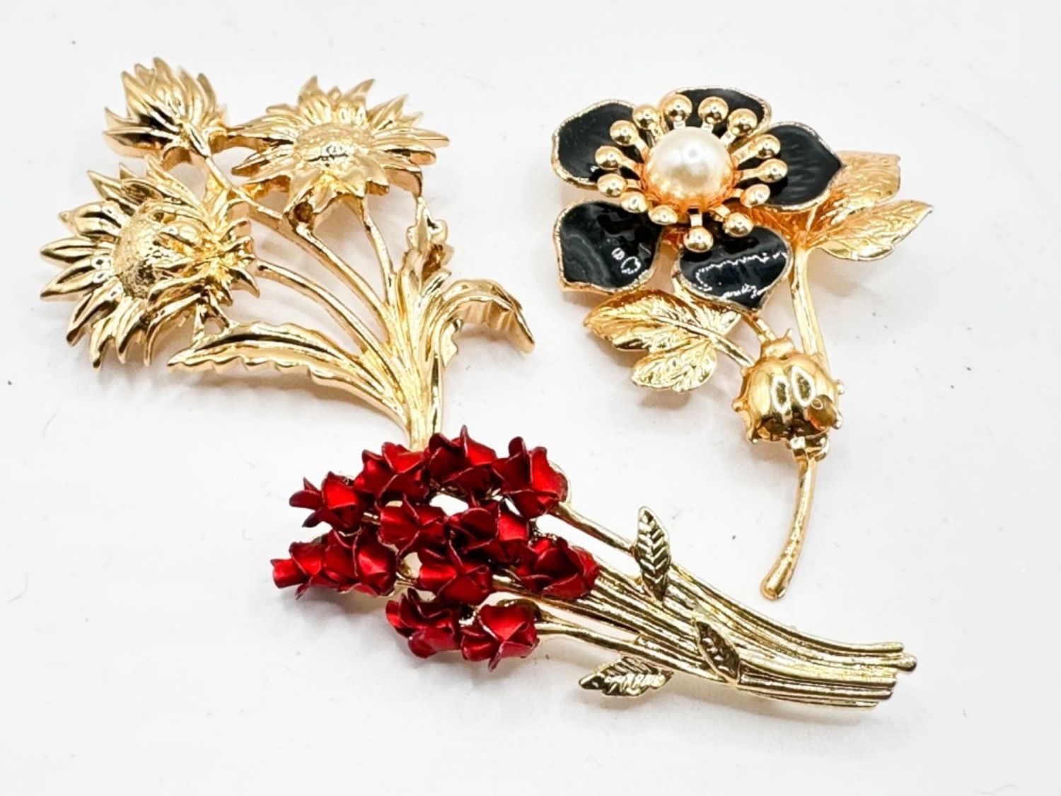 3 FLORAL BROOCHES PRETTY