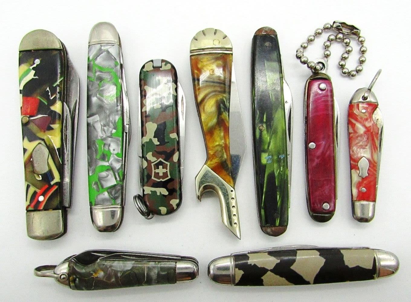 2-Blade CK Co., 2-Blade Hammer Brand, 2-Blade Made In USA, Single Blade Pride Cutlery USA, 2-Blade Unmarked; 2-Blade Hammer Brand, Single Blade USA, Single Blade Imperial Prov. RI USA, 2-Blade Multi-Tool Victorinox Switzerland; Used & Like New Conditions.
