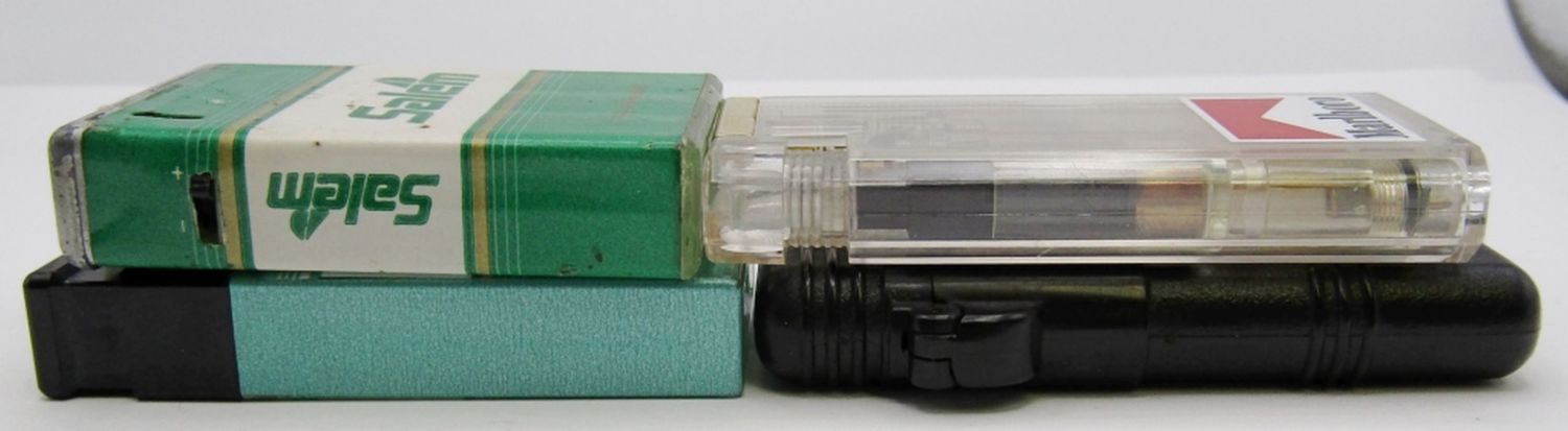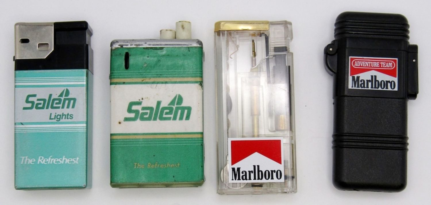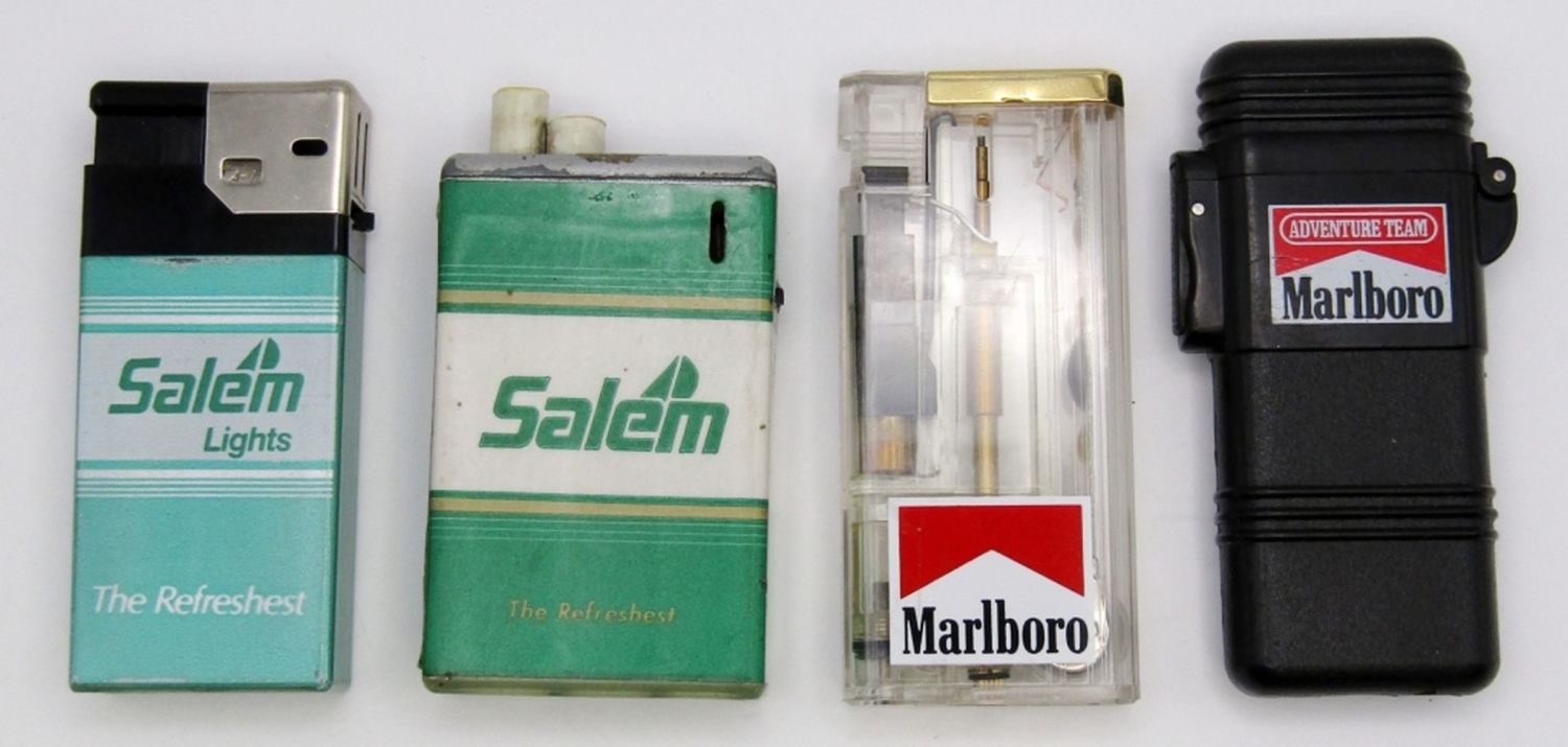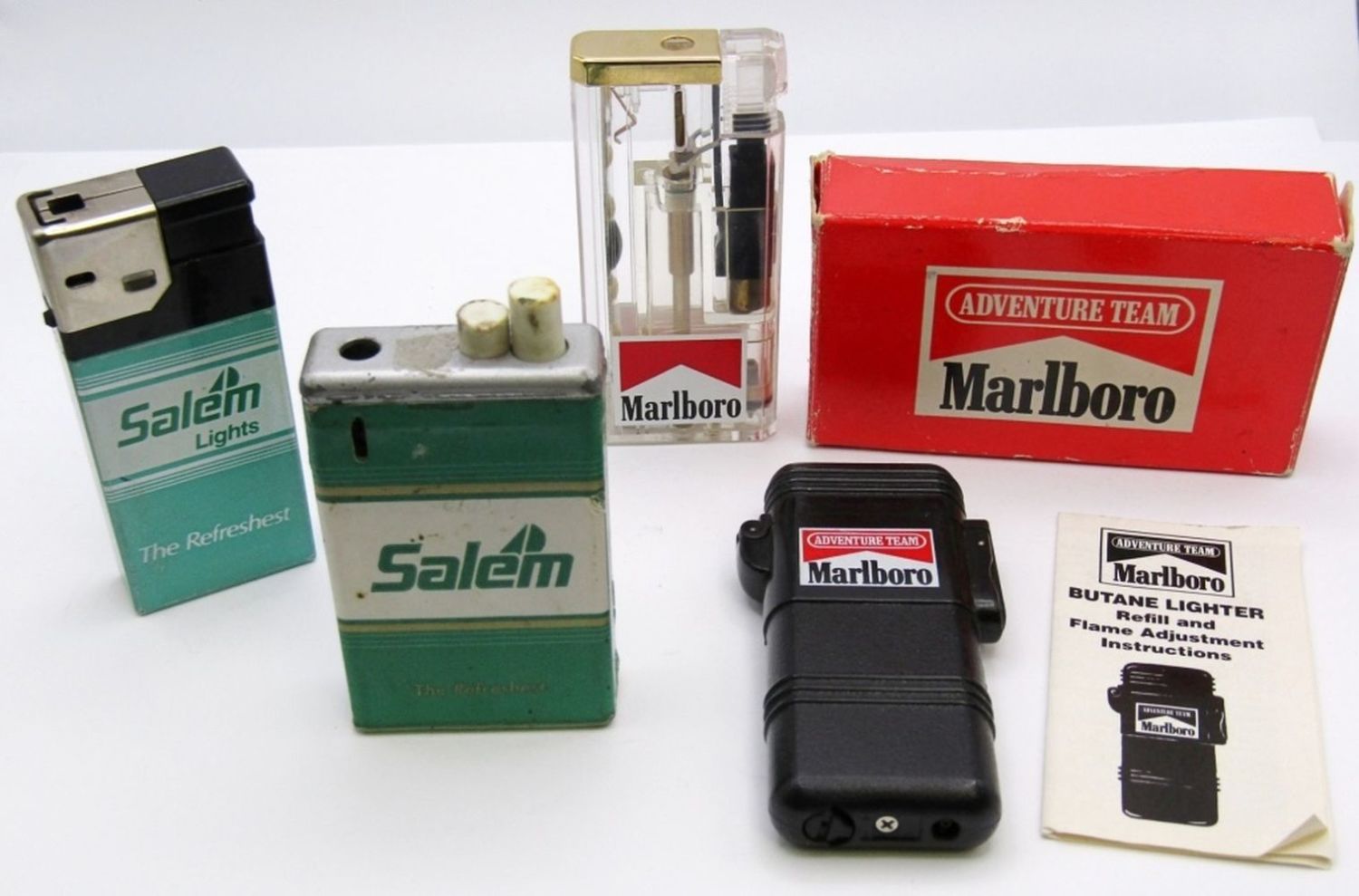 (2) SALEM & (2) MARLBORO. ADVENTURE TEAM MARLBORO BUTANE LIGHTER HAS BOX & PAPERS.