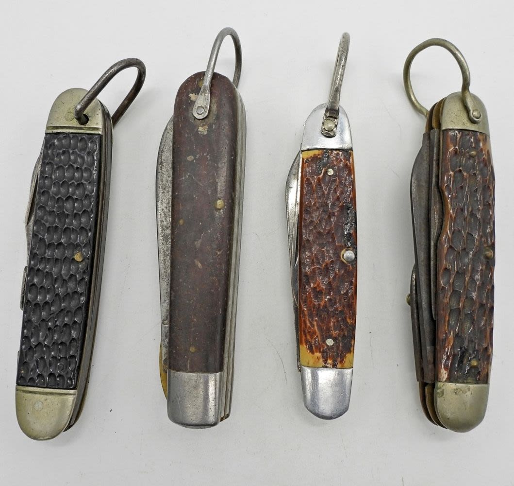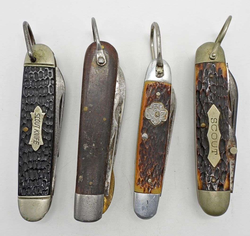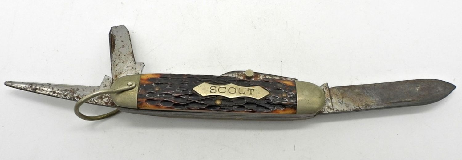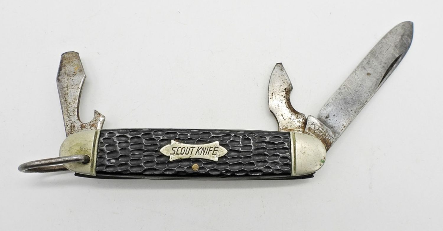 2-Blade Featherweight Pat. APL., Multi-Tool Kent N.Y.City USA “Scout Knife”, 4-Blade Multi-Tool Robeson 642214 “Scout”, 2-Blade Boker 9229; Used Conditions.
