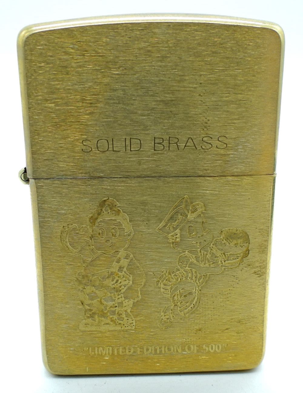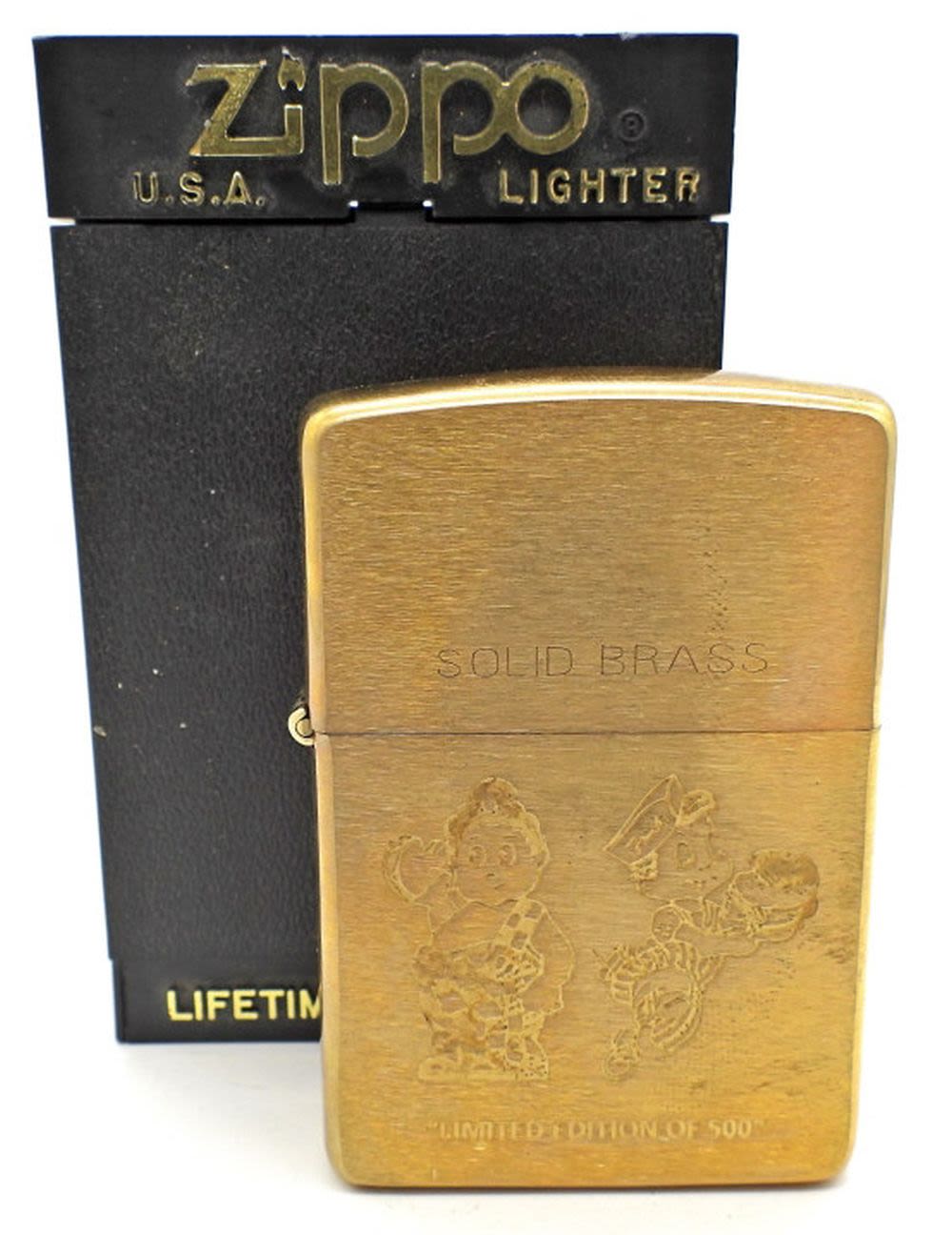 ETCHED SOLID BRASS ” LIMITED EDITION OF 500″ WITH TWO BIG BOY FIGURES, IN ZIPPO BOX