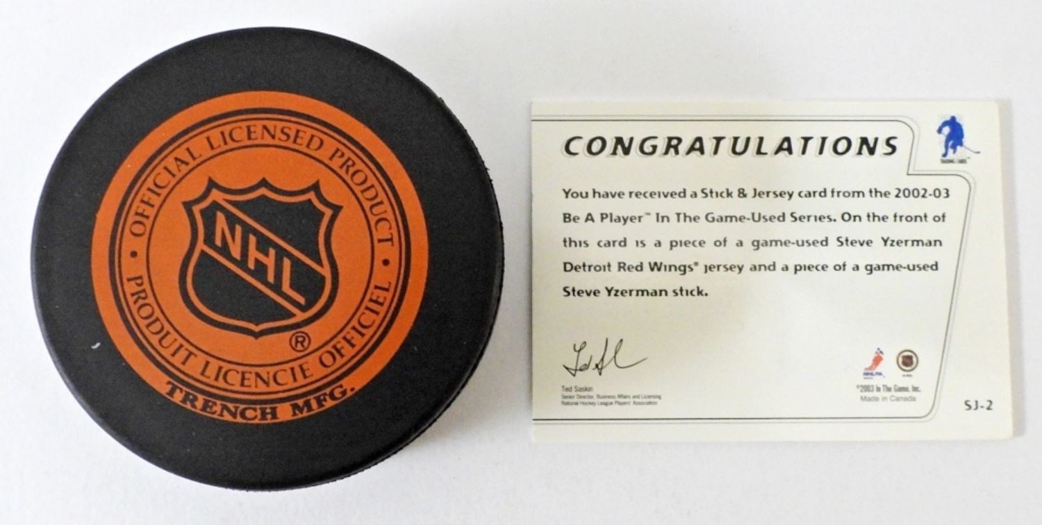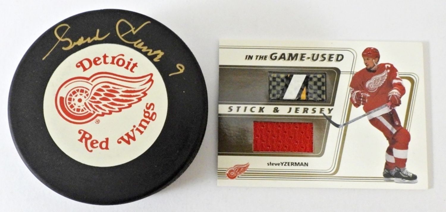 DETROIT RED WINGS (NO COA), PLUS STEVE YZERMAN GAME USED STICK & JERSEY CARD