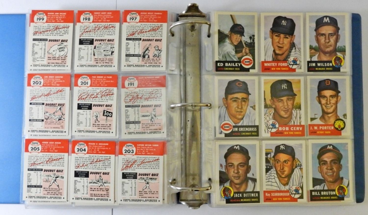 TOPPS (330) VINTAGE BASEBALL CARDS IN LARGE BINDER BOOK WITH SHEET PROTECTORS – TOPPS ARCHIVES 1953T