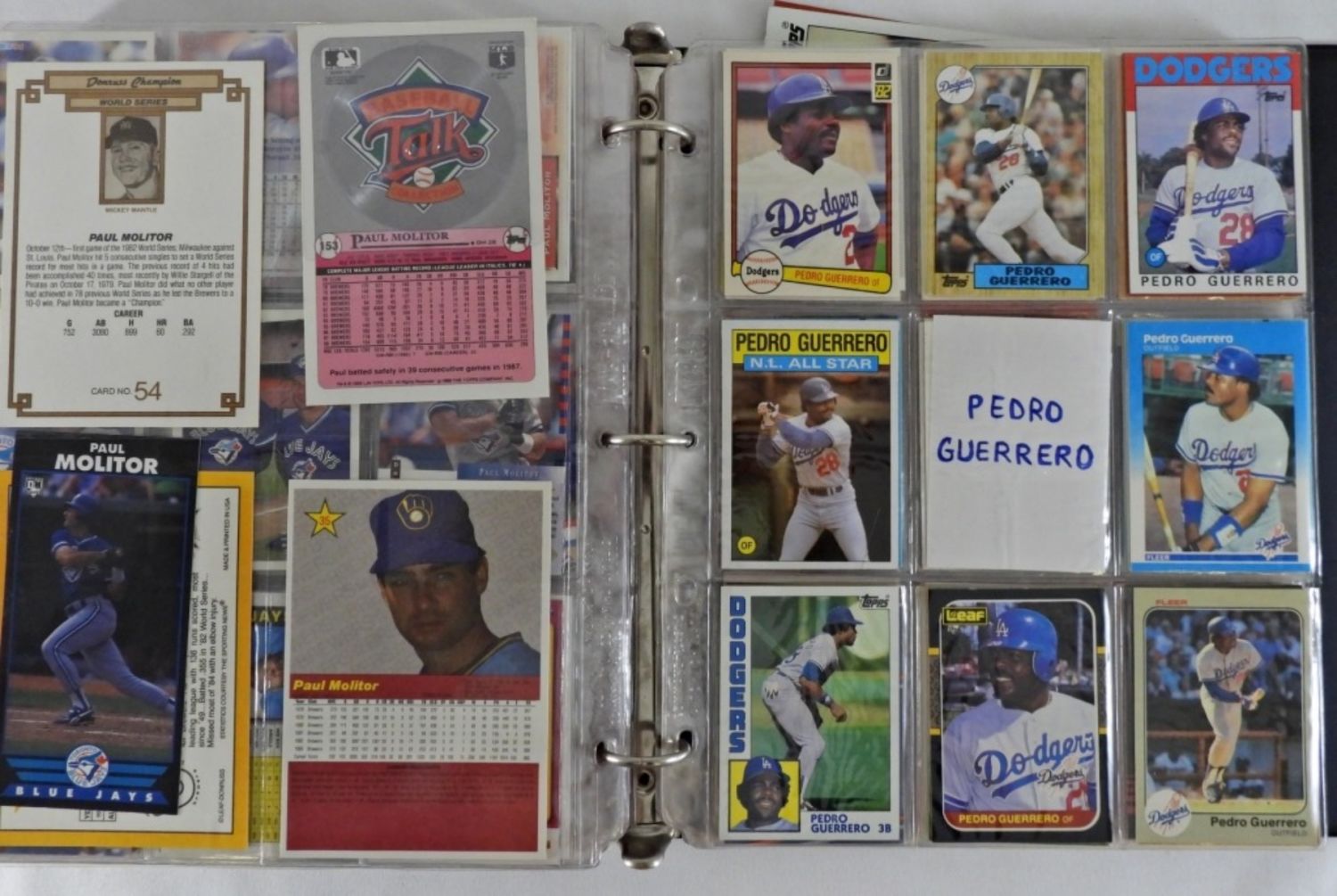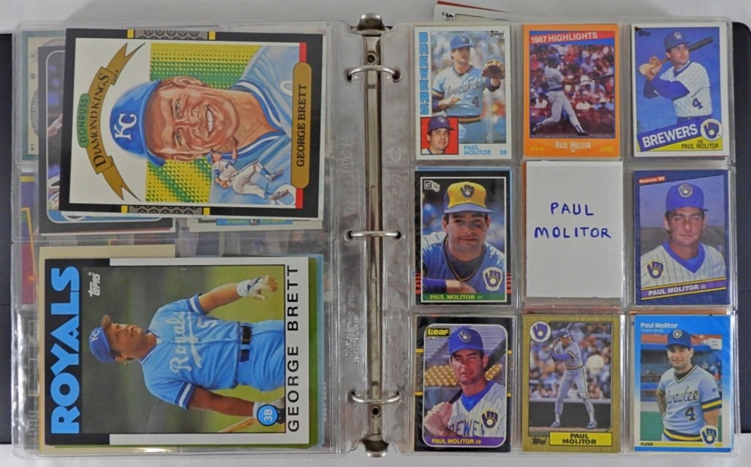 GUERRERO – AMAZING VARIETY CARD COLLECTORS ALBUM – APPROX ( 235) GEORGE BRETT with cut signature, (150) PAUL MILITOR, (130) PEDRO GUERRERO – OVERALL NICE CONDITION