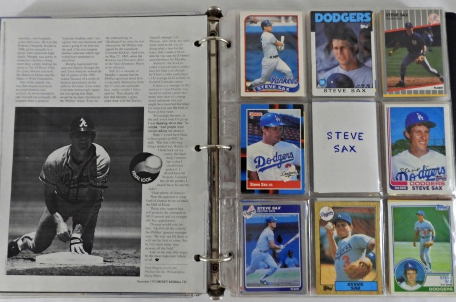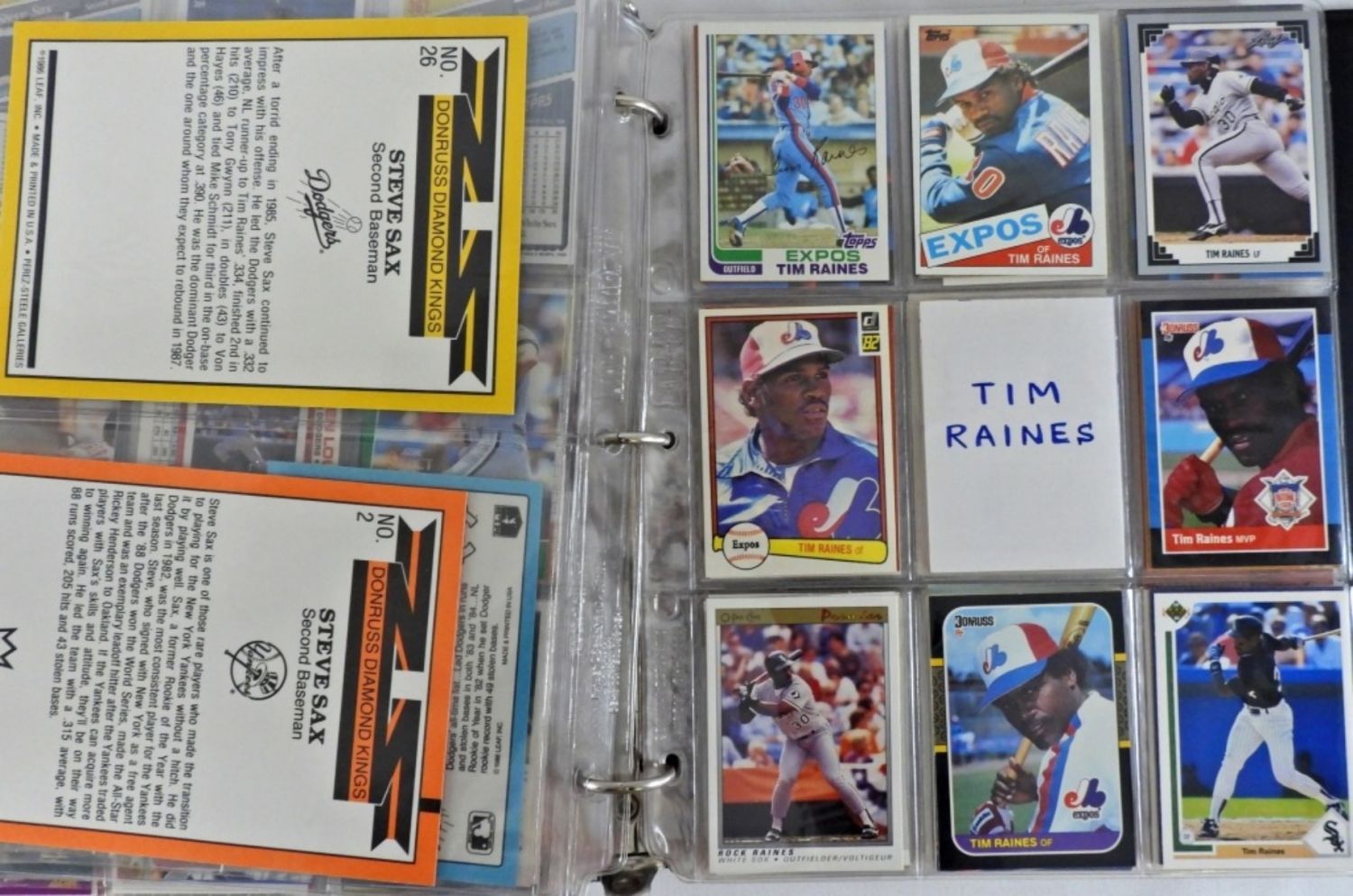 AMAZING VARIETY CARD COLLECTORS ALBUM – APPROX (200) DALE MURPHY with signed card, (125) STEVE SAX, (155) TIM RAINES – OVERALL NICE CONDITION