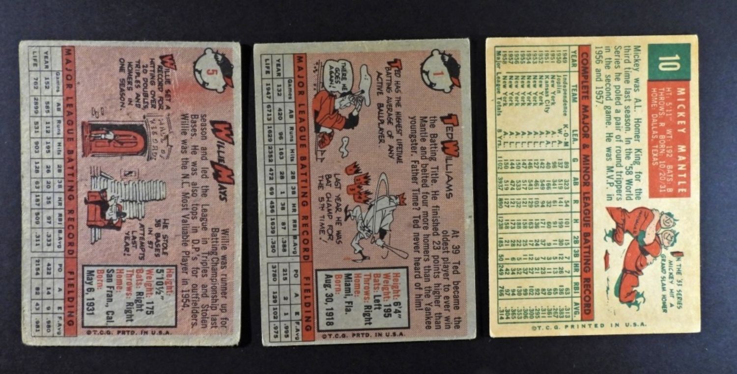 APPROX (770) CARDS 1957 to 1961 with MOSTLY 1958 & 1959 TOPPS – LOADED WITH BIG STAR CARDS – includes 1957 T CLEMENT Good & AARON vg; 1958 T WILLIAMS vgex, F. ROBINSON vgex, MARIS vgex, BUNNING vgex, KALINE vgex, (2) DRYSDALE vg, (2) KOUFAX vg/vgex, MAYS good; 1959 T MANTLE vg, BANKS vgex, KALINE vgex, (4) MARIS vg/vgex – PLUS SO MANY SEMI STARS & MINOR STARS – OVERALL VG/VGEX COLLECTION