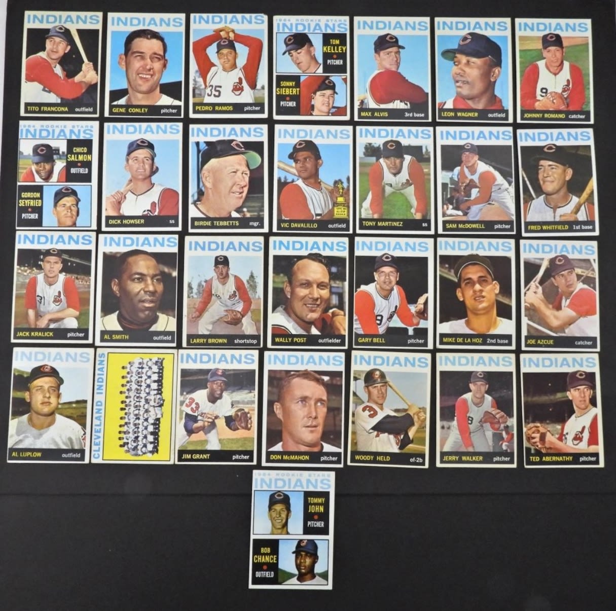 ALL CLEVELAND INDIANS – ALL DIFFERENT – NICE EX/EM – TOMMY JOHN ROOKIE EX++