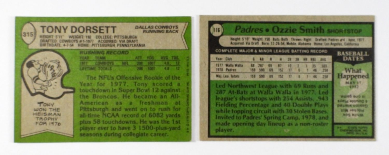 1978 T#315 DORSETT EX, 1979 T #116 OZZIE SMITH EX 80/20
