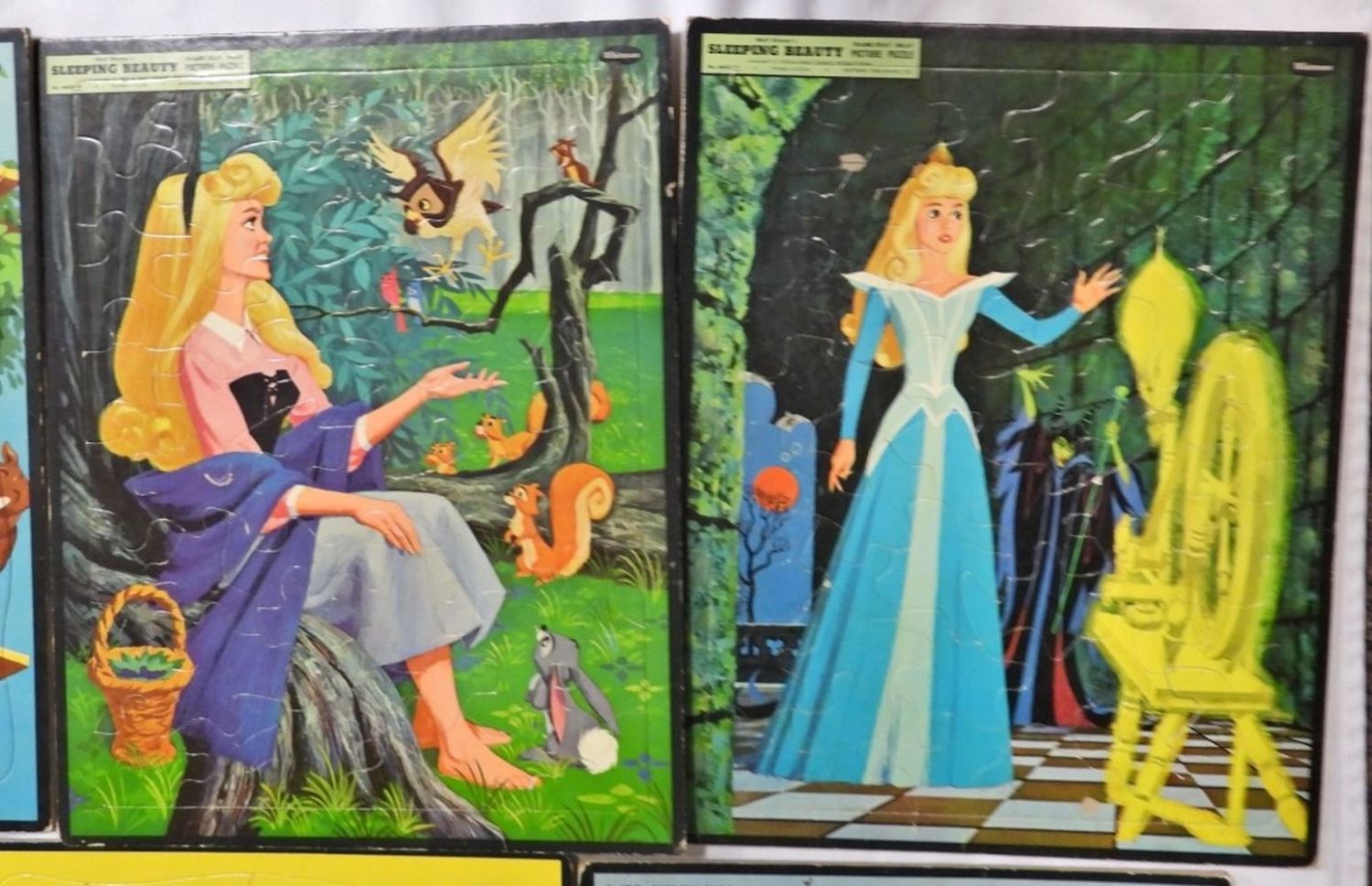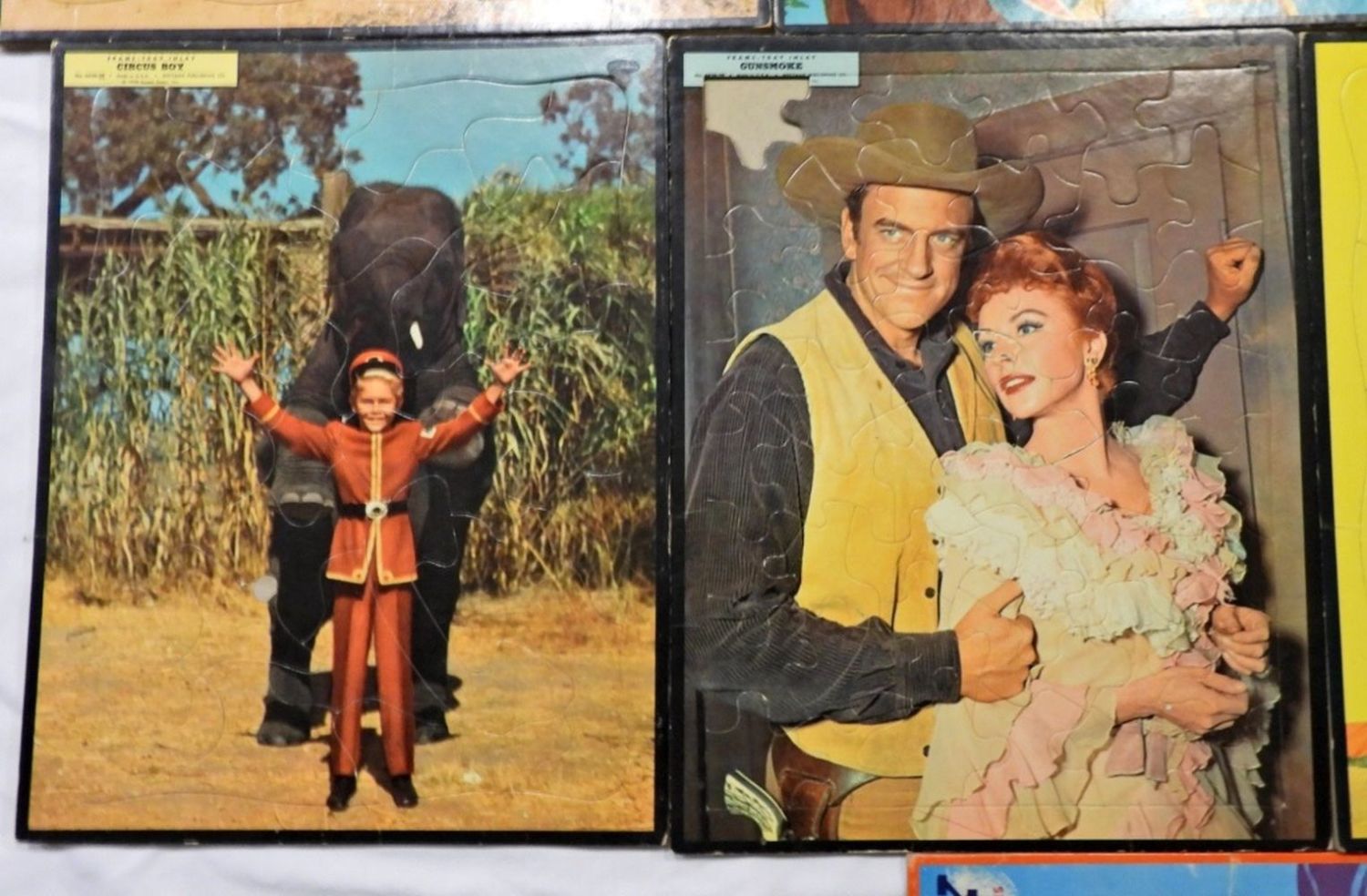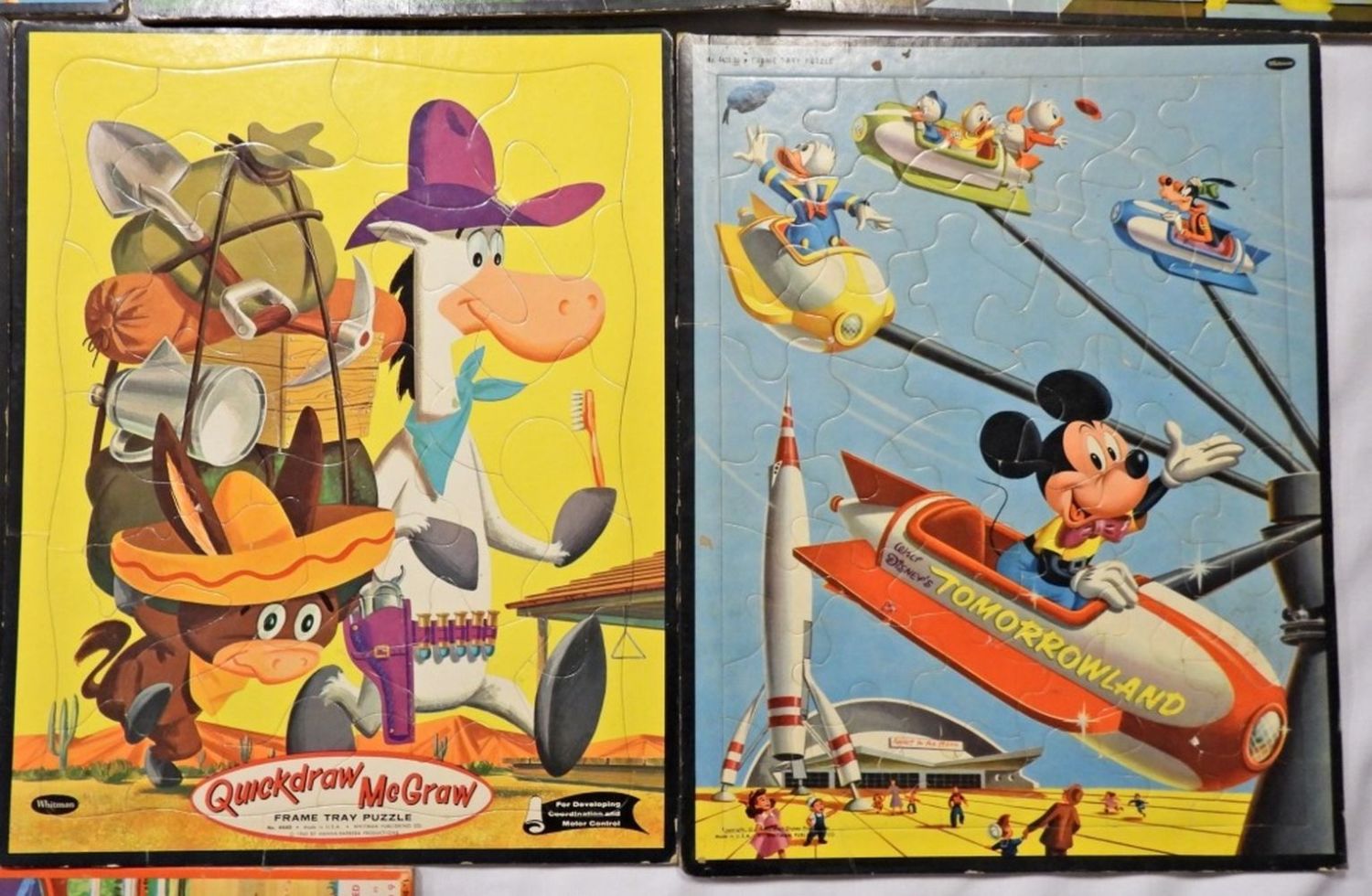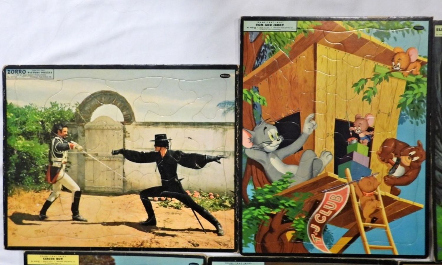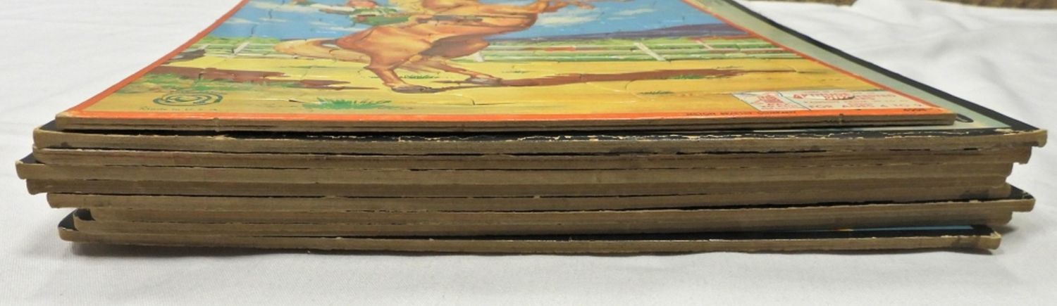 14X1 IN SIZE, SOME ARE STARTING TO SEPARATE, 1 WALT DISNEY TOMORROWLAND, 1 QUICKDRAW McGRAW,1 TOM AND JERRY, 1 GUNSMOKE (MISSING ONE PIECE), 1 CIRCUS BOY, 1 ZORRO, 2 SLEEPING BEAUTY, 1- MILTON BRADLEY CO. ANNIE OAKLEY,