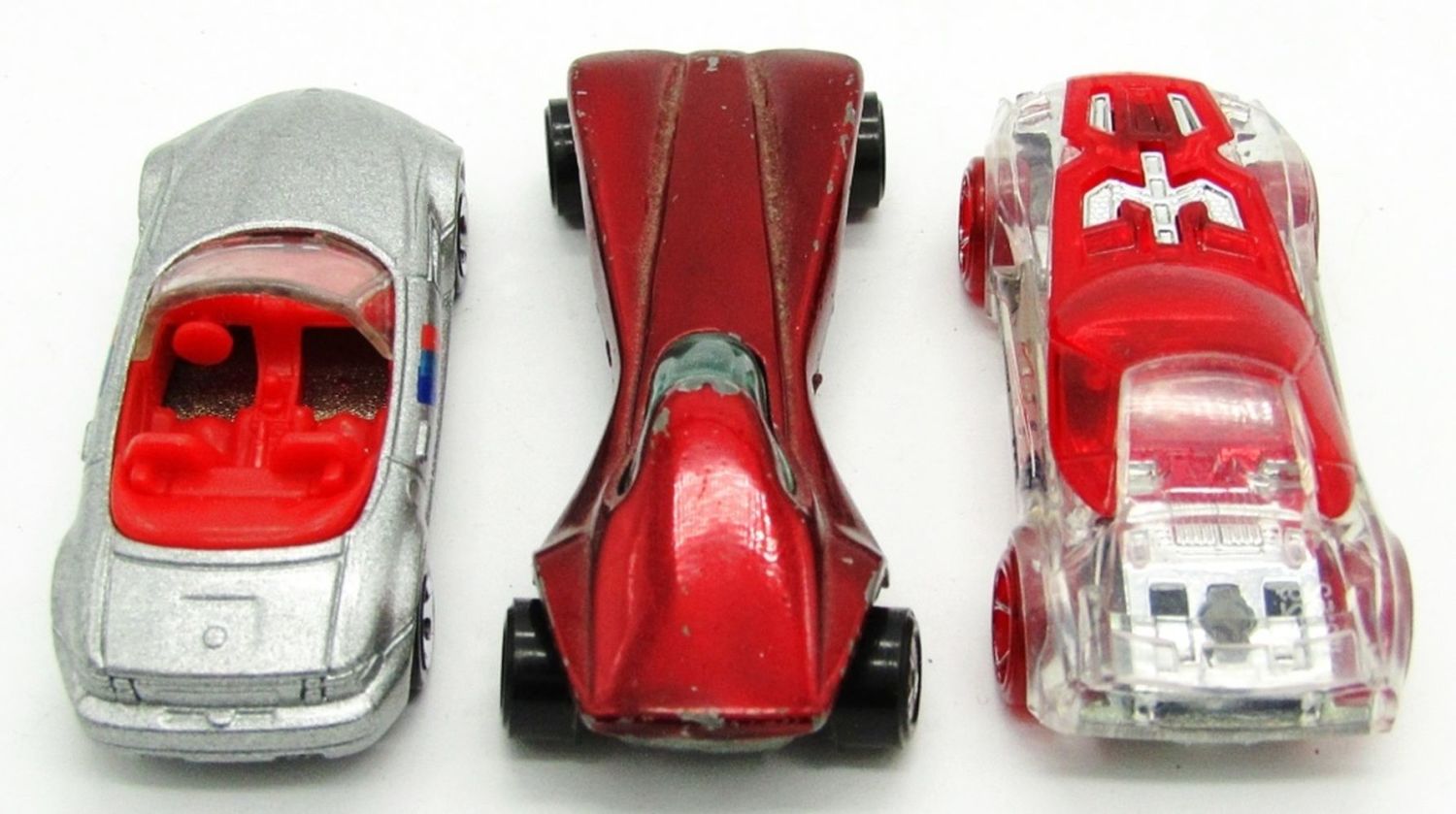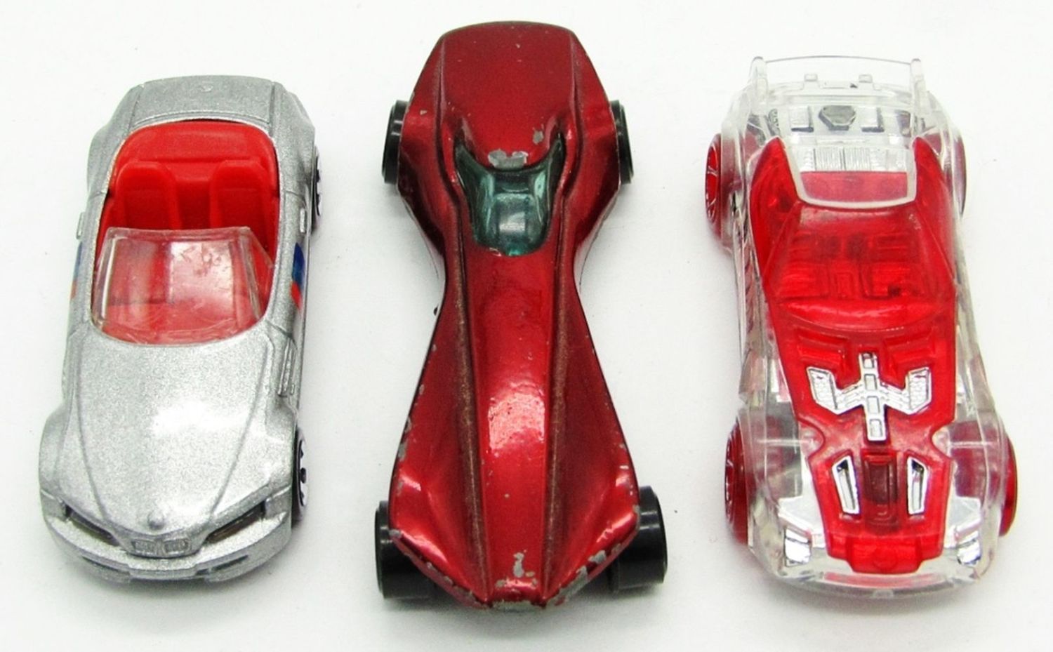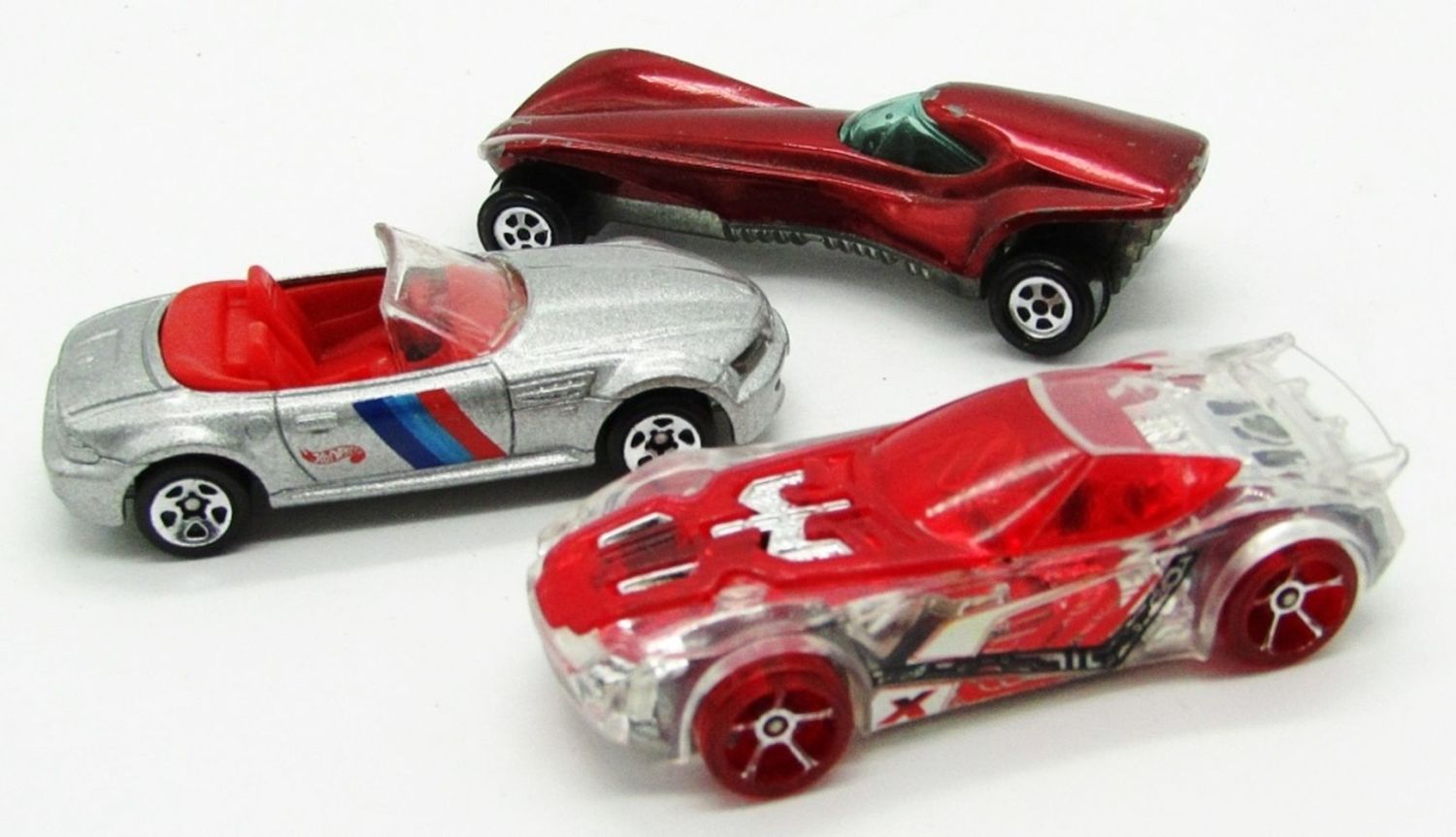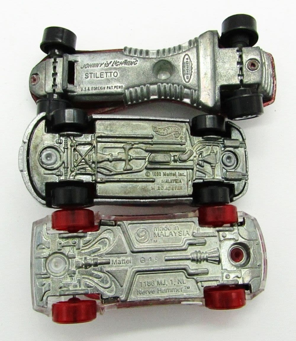1970 Topper Johnny Lightning Stiletto Red, 1996 Hot Wheels M Roadster BMW Silver Convertible, Hot Wheels Nerve Hammer; Used Conditions.