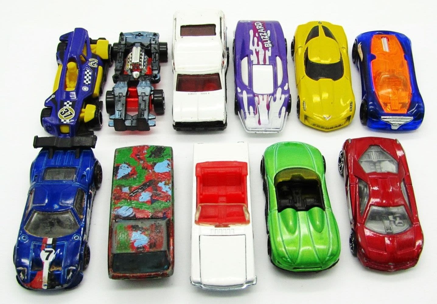 Nitrium, 2009 Corvette Stingray Concept, 1983 Hot Wheels Mustang, 2002 Cadillac Cien, 1967 Deora, 1980’s MiniTrek Good Time Camper, 1986 Robot Car Speed Demons Blue, 2000 MX48 Turbo, 1974 Silver Bullet “Blizzard”, 2006 Med-Evil #37, Ford GT LM; Used Conditions.