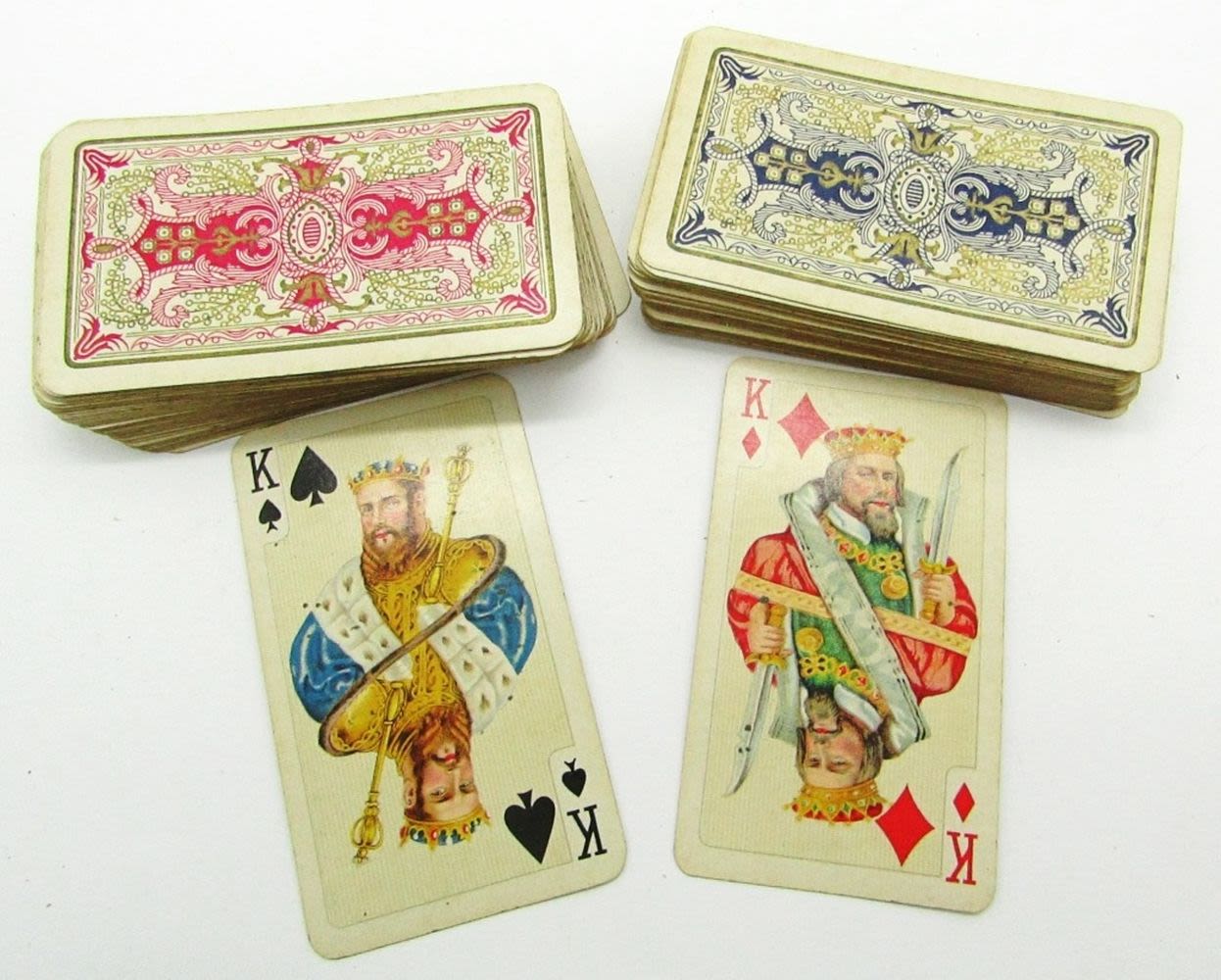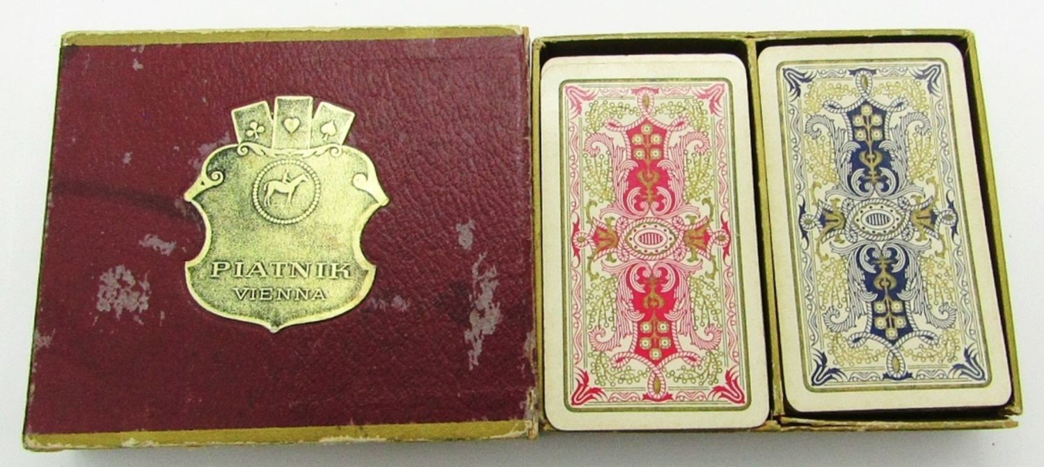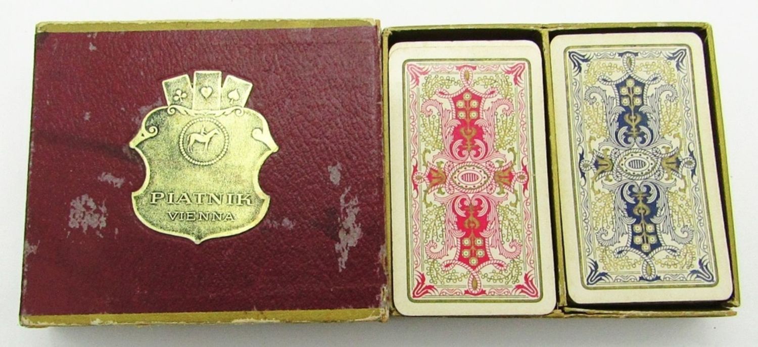 Playing Cards – Jokers are missing; Whole Suit Sets; Box has wear and tear from age.