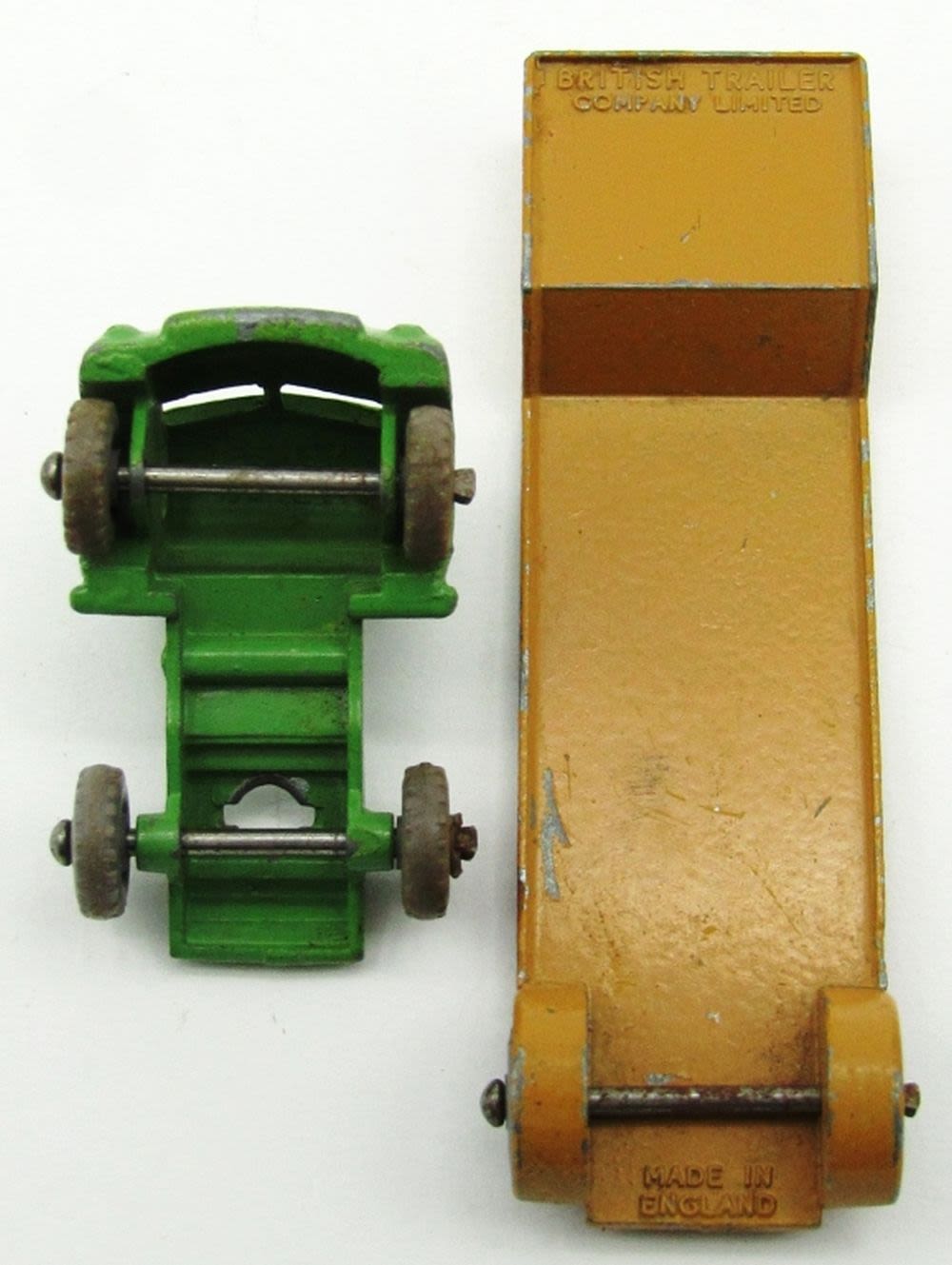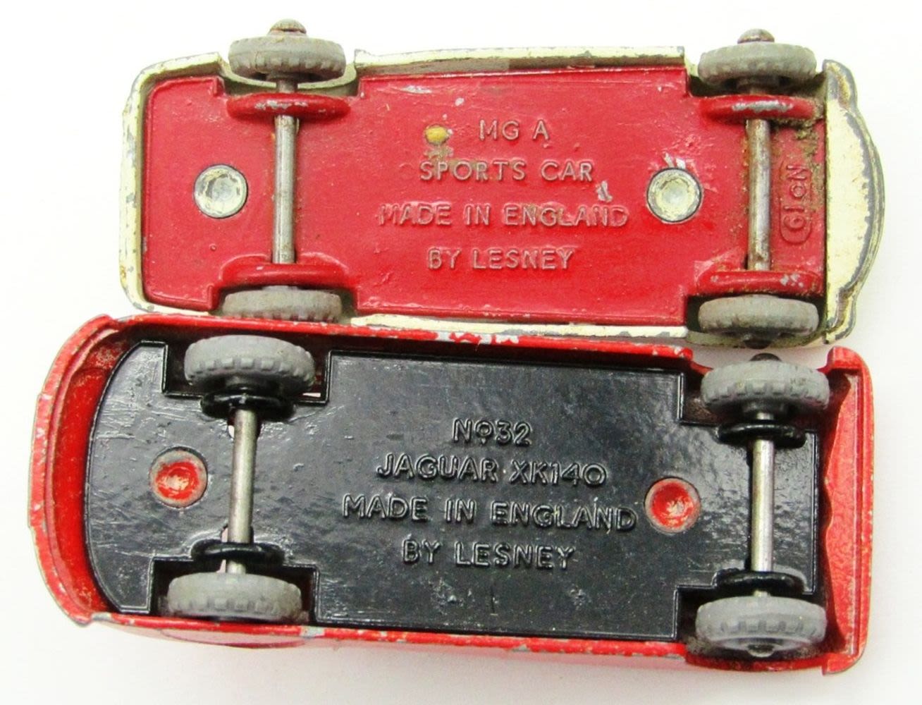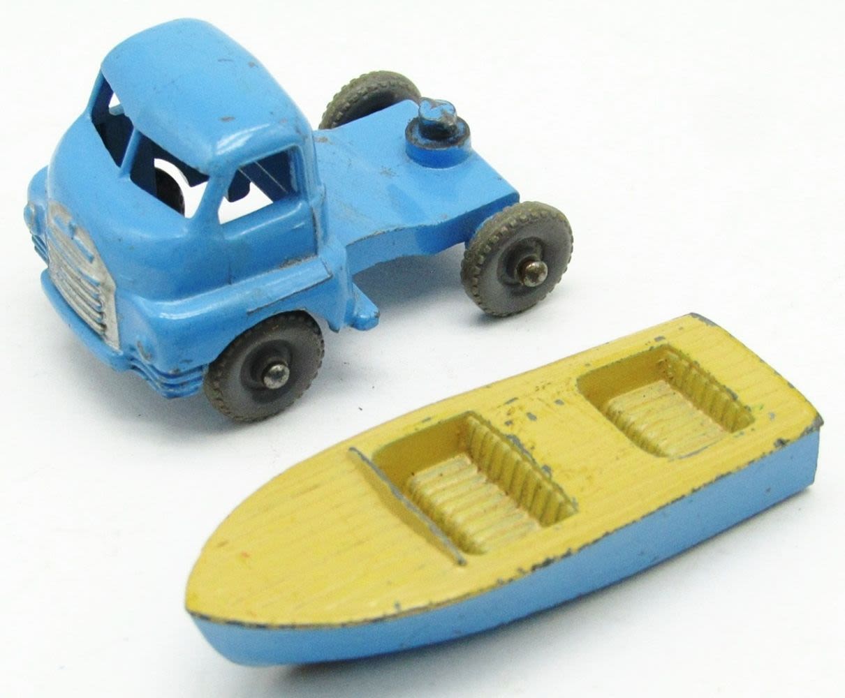 “Matchbox” Car Transporter No.2, 1904 Spyker, No. 29 Bedford Milk Van, Yellow Coca Cola Karrier Bantam 2 Ton Truck No.37, Meteor Sportsman MK II No.48, No.27 Bedford Low Loader Truck, MGA Sports Car No.19 (With Driver), No.32A Jaguar XK 140 Coupe Red Body (RARE!); Used but Good Conditions!