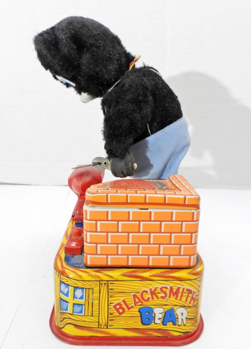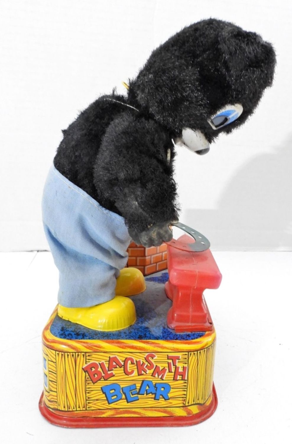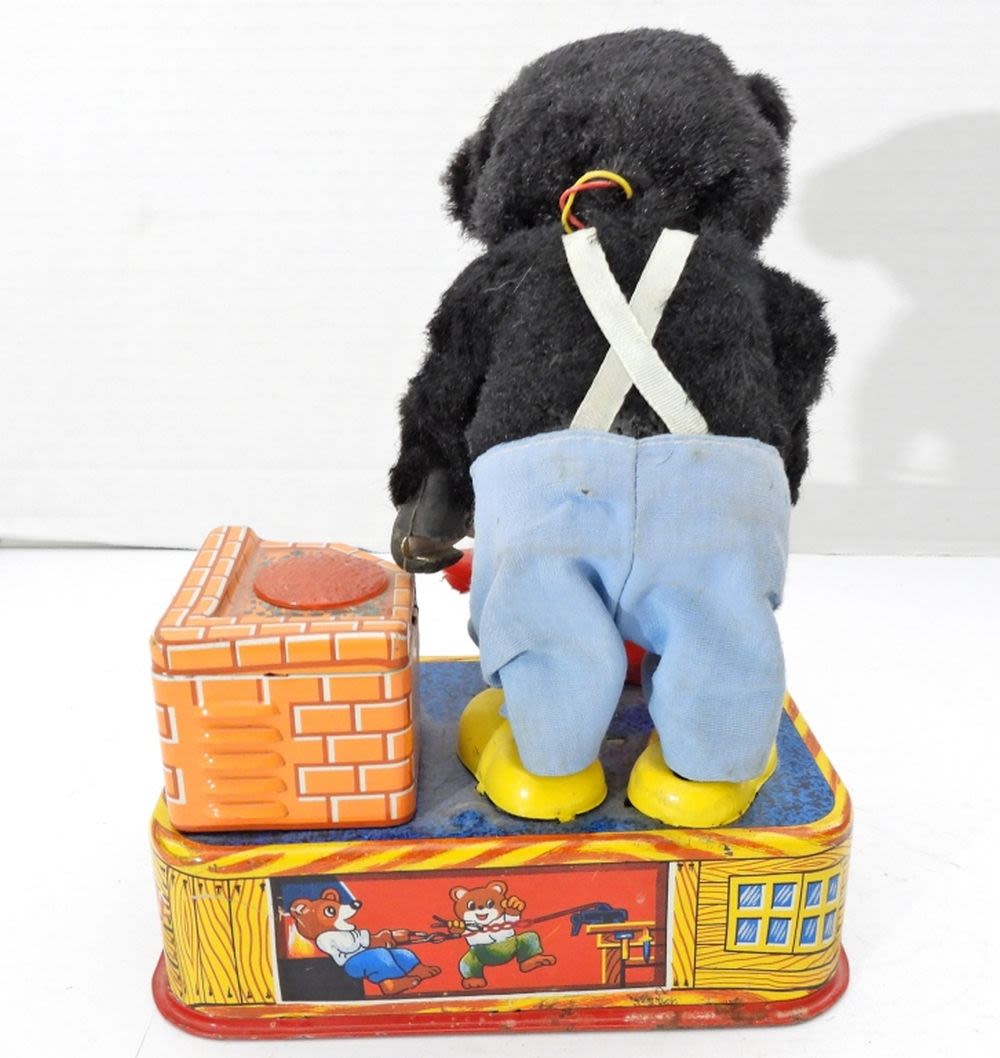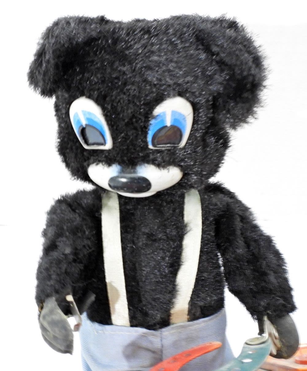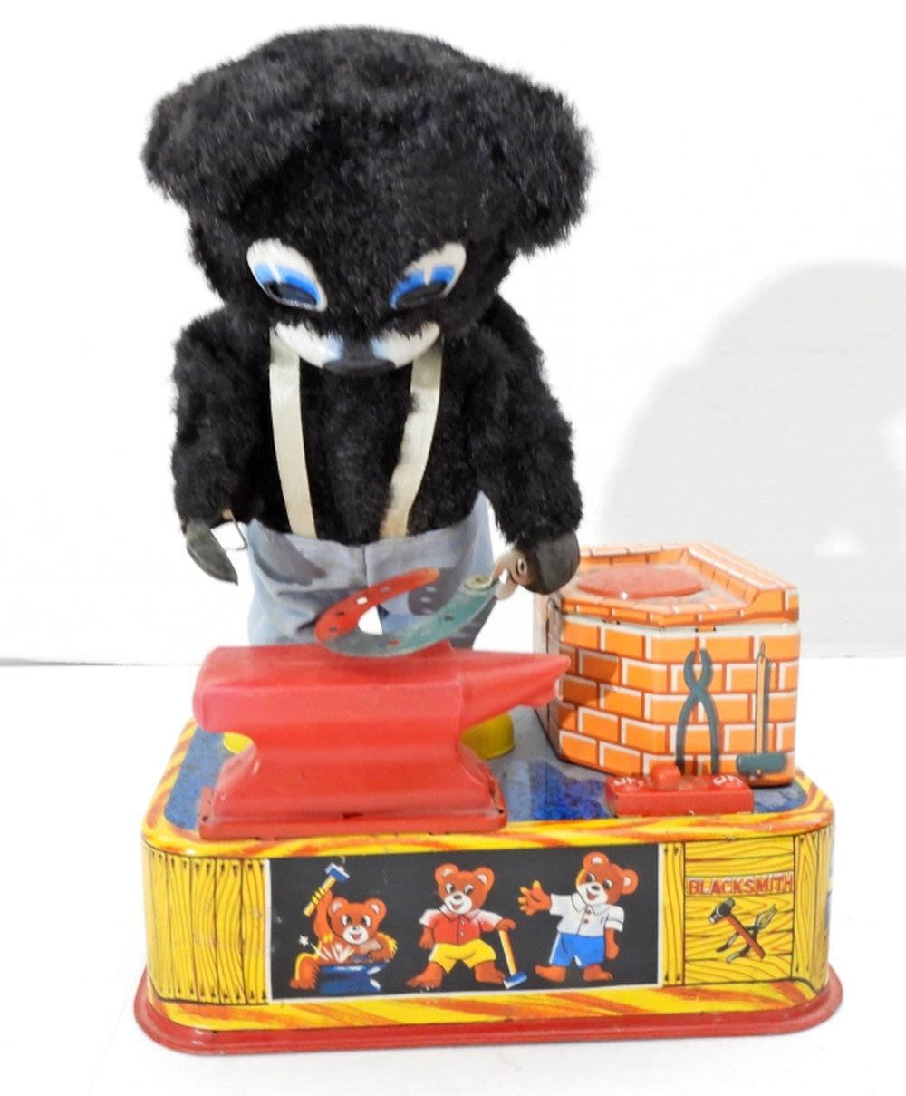 VINTAGE 1950’S BLACKSMITH BEAR TIN LITHO IRON WORKER A-1 TOY CO. JAPAN