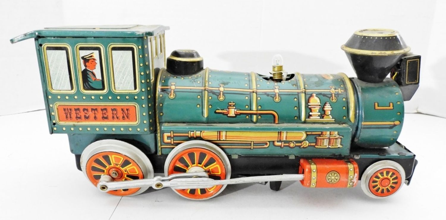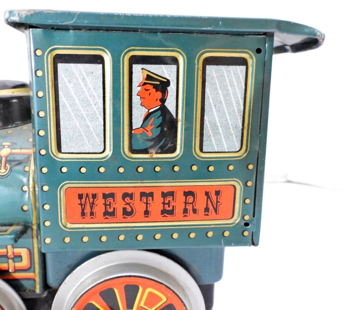VINTAGE MARX TIN LITHO WESTERN TRAIN ENGINE – WHEELS WORK