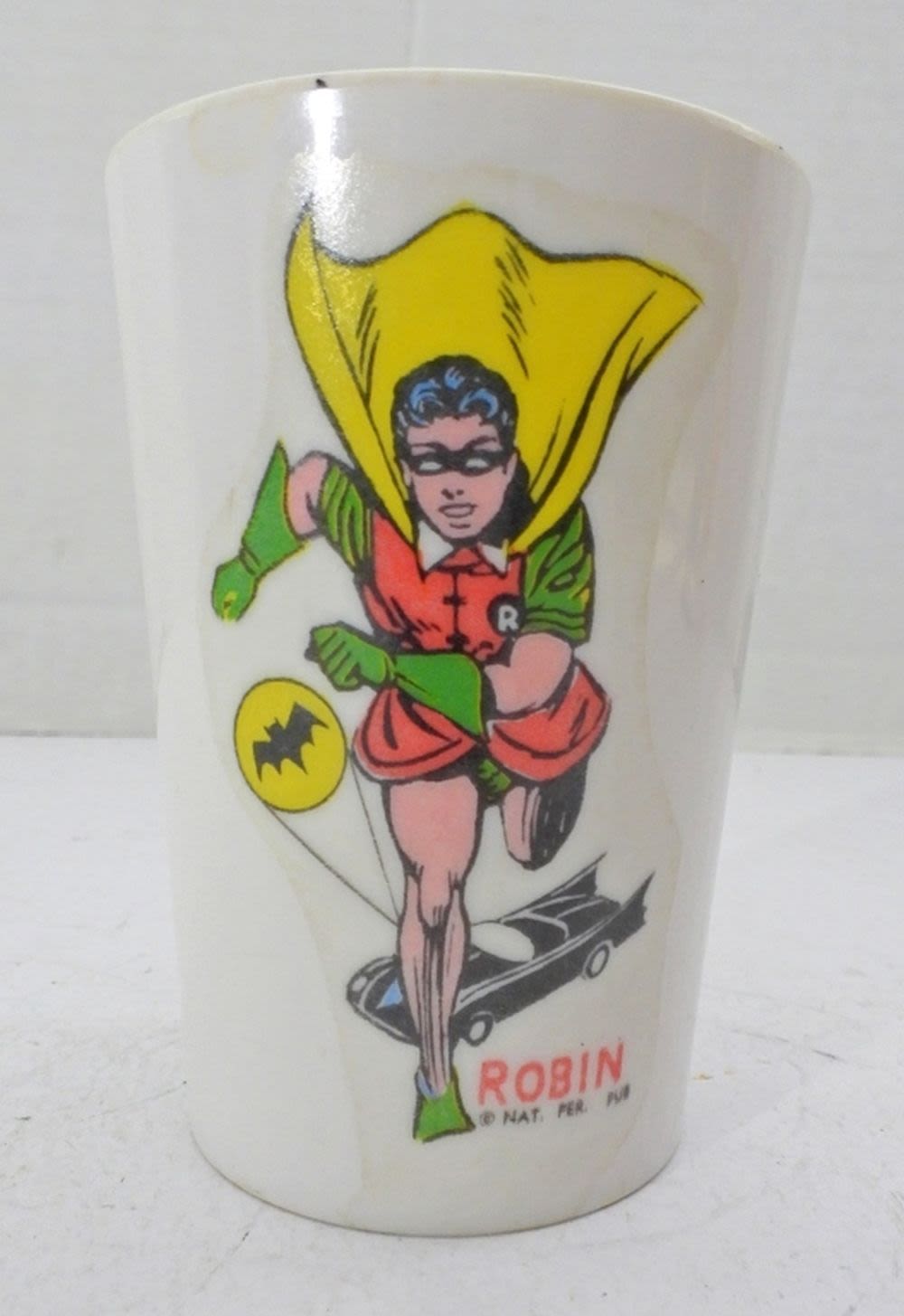 VINTAGE 1960 BATMAN AND ROBIN PLASTIC DRINKING CUP NAT. PER. PUB.