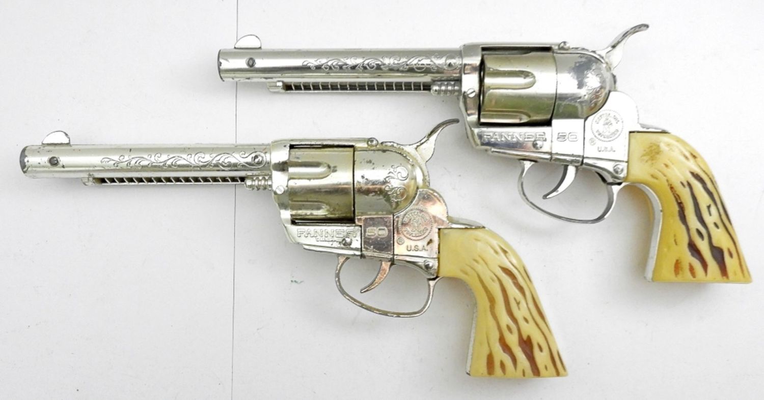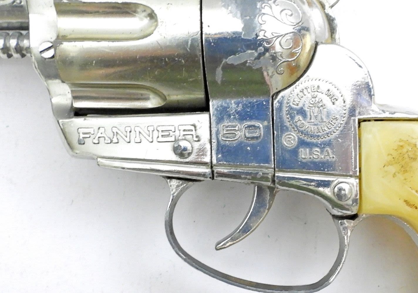 BOTH 10 IN LONG, STAMPED MATTEL.IN TOYMAKERS MARK, FANNER 50, BOTH CLICK