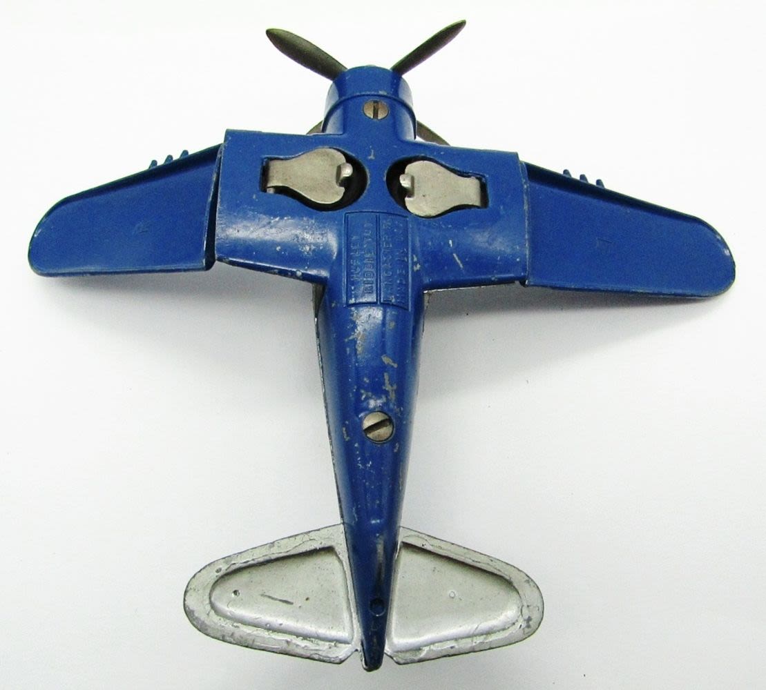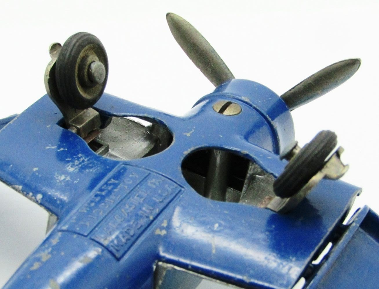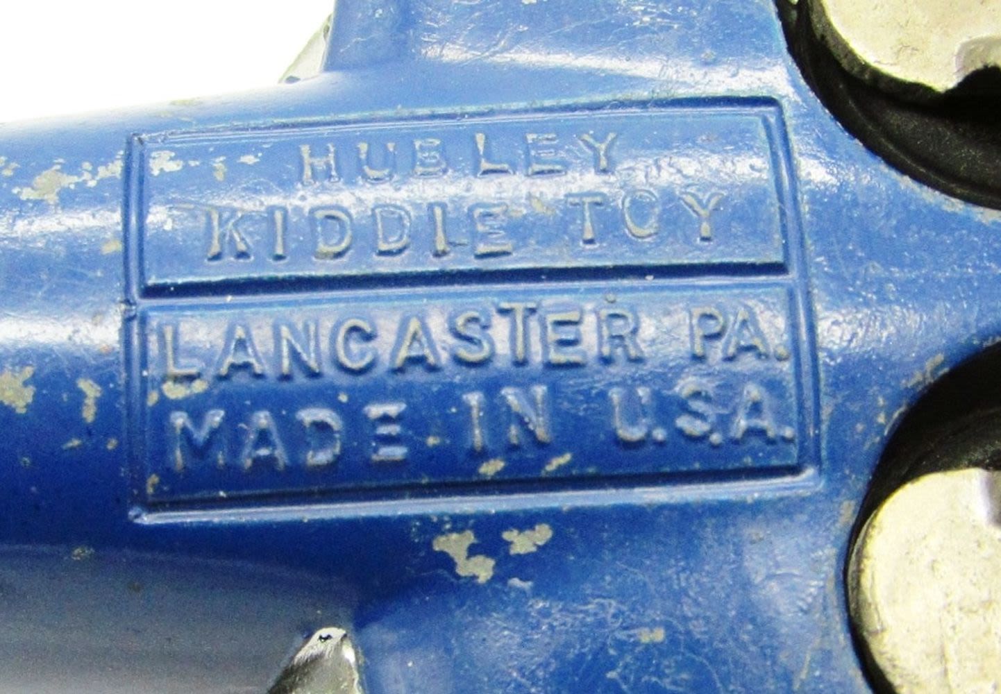 Blue Painted, Wheels Pull Down; Marked “Hubley Kiddie Toy Lancaster PA Made In USA; Used Condition.