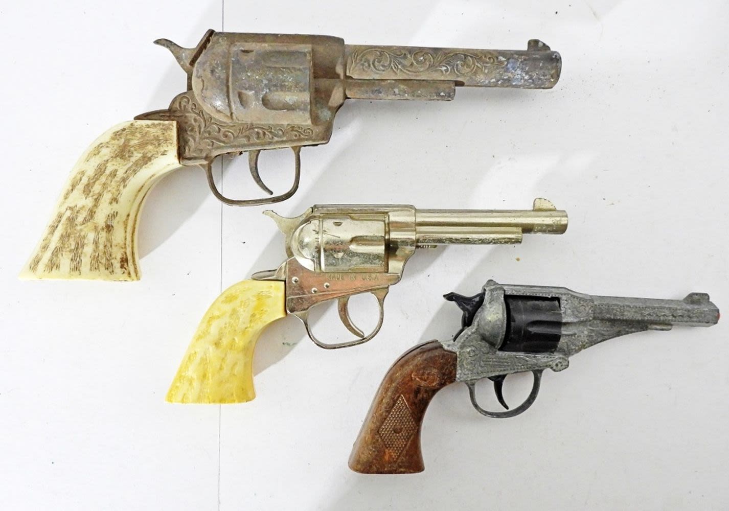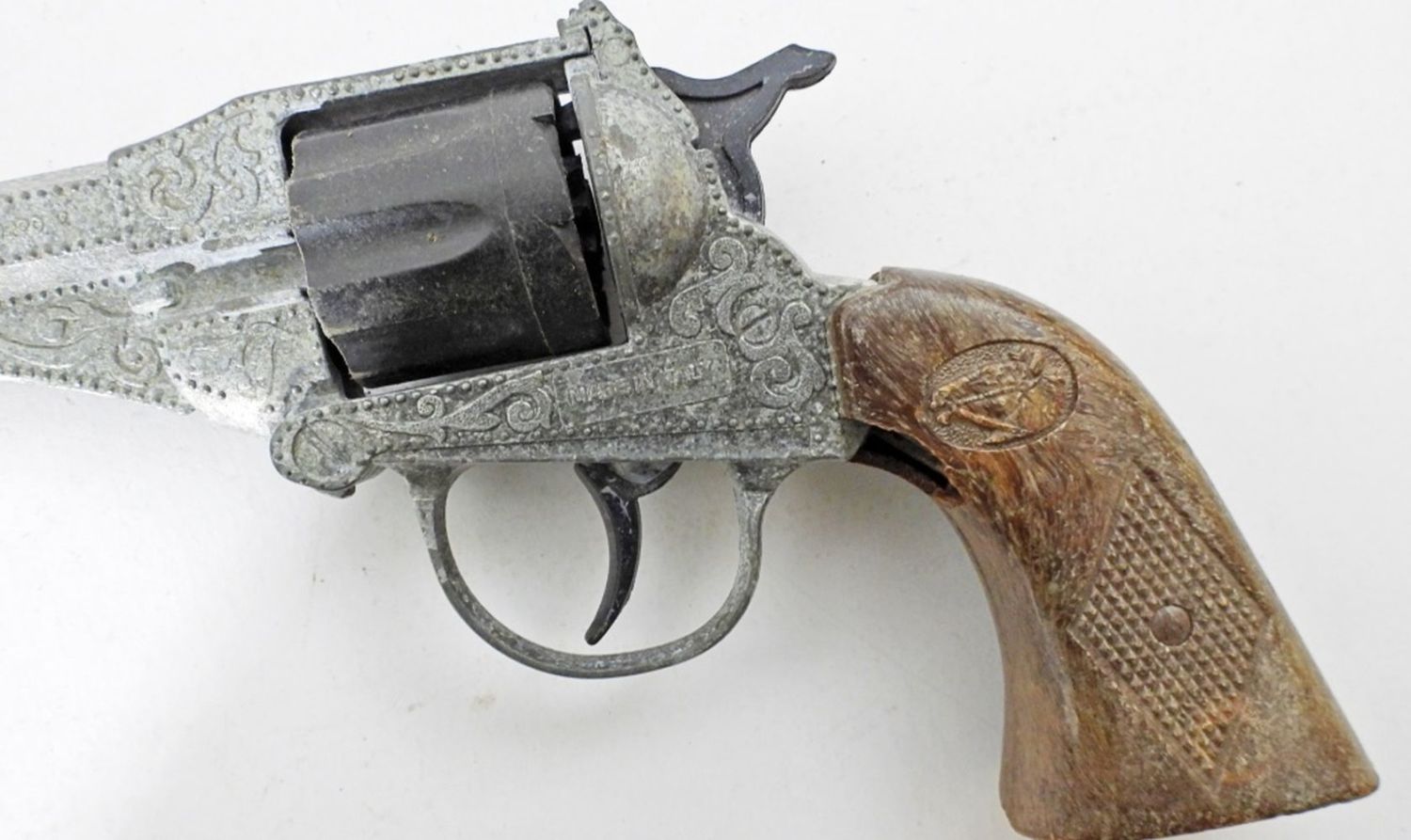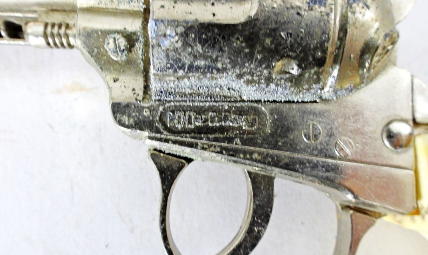 1- EDISON GIOCATTOLI SPA MADIE IN ITALY CAP GUN, 7IN LONG, TIGGER CLICKS, 10IN LONG, PONY BOY, TIGGER CLICKS BUT DOES GET STUCK, 1-HUBLEY, TIGGER CLICKS
