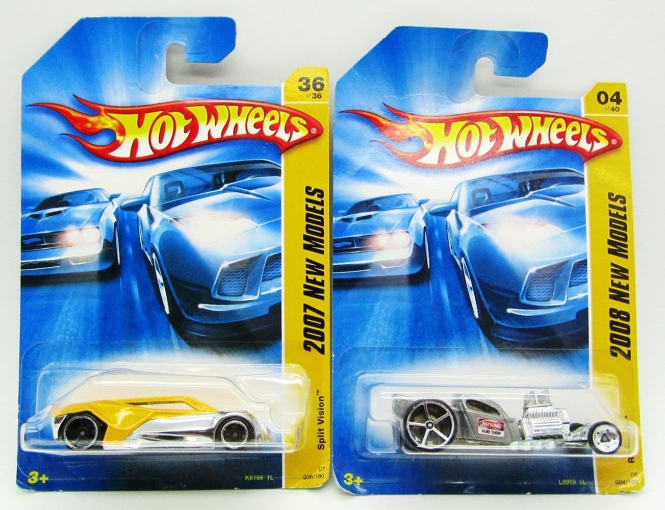 & Revell; Hot Wheels 2007 New Models #36 of 36 “Split Vision”; Hot Wheels 2008 New Models #04 of 40 “Ratbomb”; Maisto Special Edition GT Cruiser; Revell Limited Edition Jimmy Hensley #43 Authentic Diecast Replica; AllNew In Boxes (Boxes have slight wear from age).
